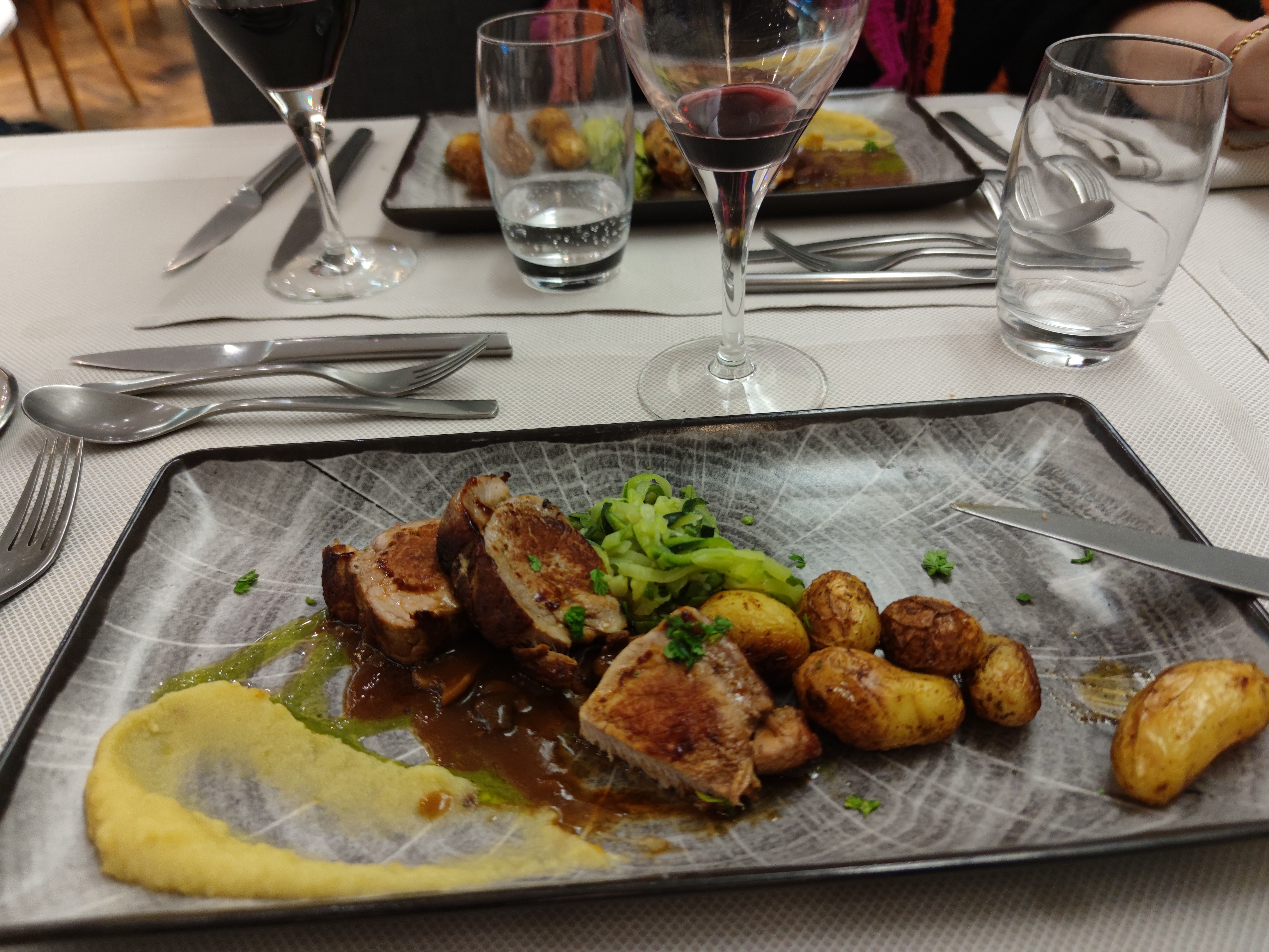 Très bien mangé, cuisson du poisson maîtrisé, suprême de pintade un peu trop cuit et sec à mon goût, purée froide. Mais dans l'ensemble plutôt correct j'y reviendrai.