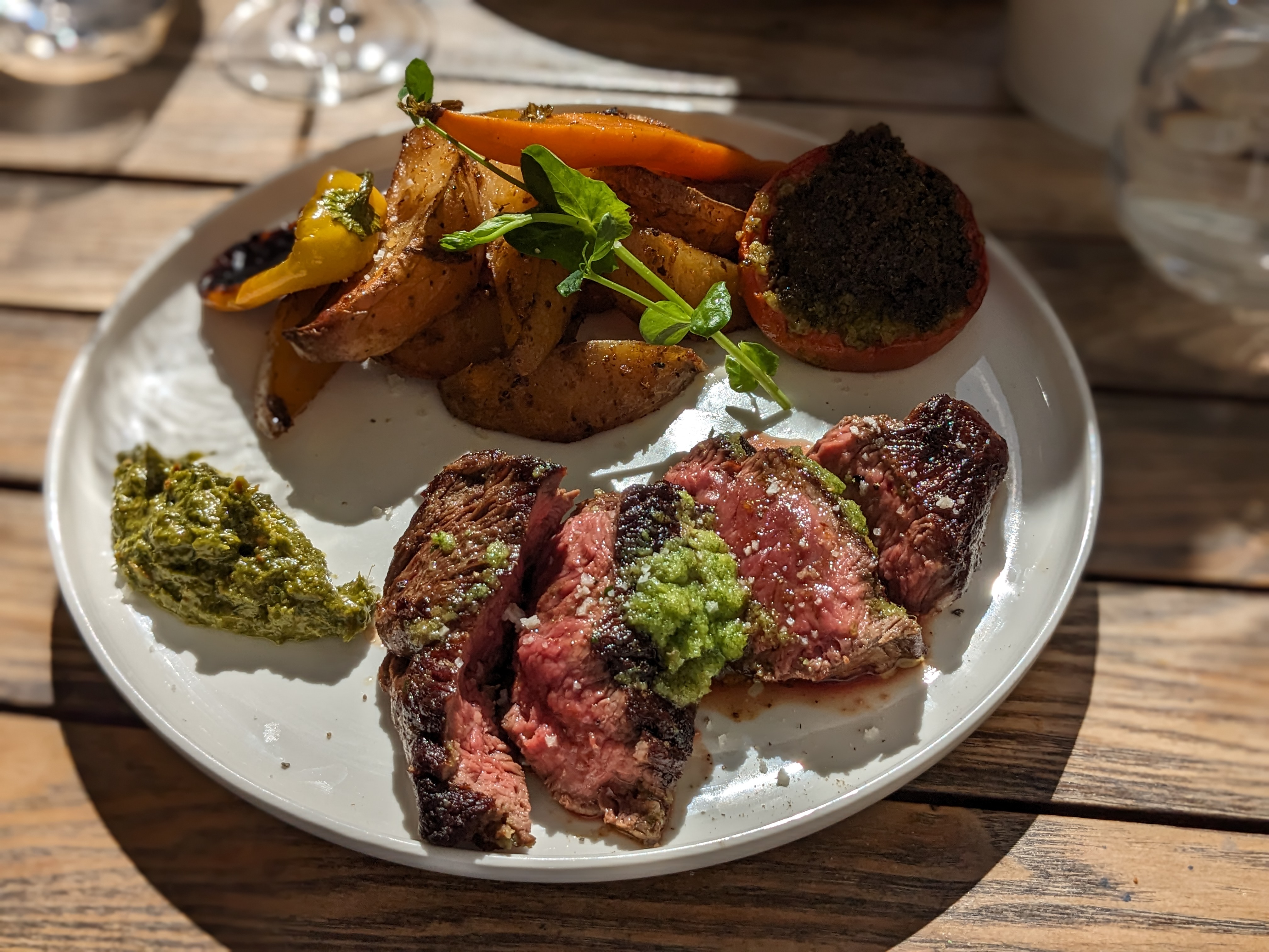 Très agréable Service très sympa Carte réduite mais tout y est bien suffisant Plats copieux et vraiment savoureux Mention spéciale pour le chimichuri maison qui est une tuerie ! Relevé à souhait Je ne met que 4 étoiles car ma viande demandée saignante est arrivée à point ++ Mais à part ça je recommande