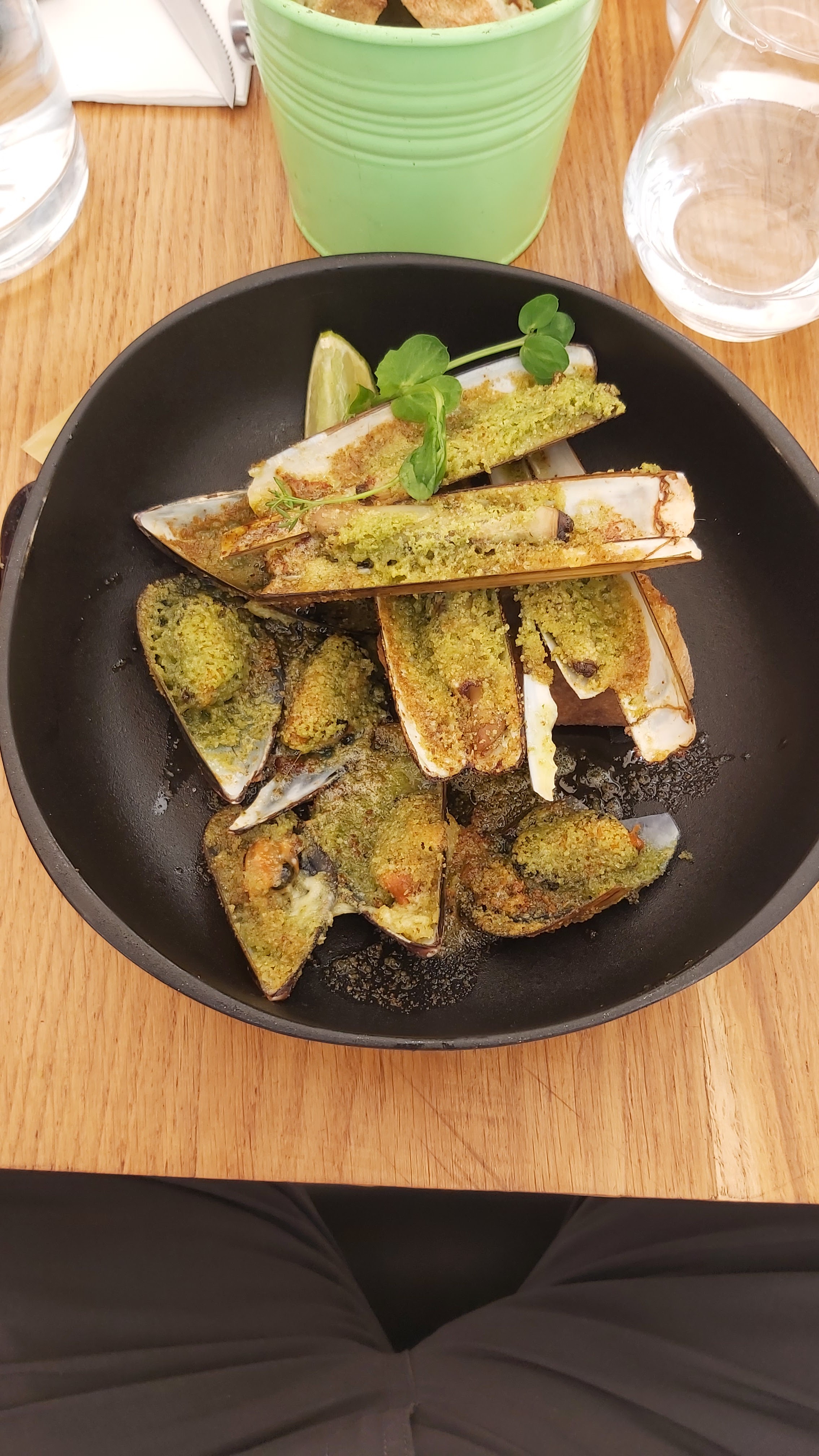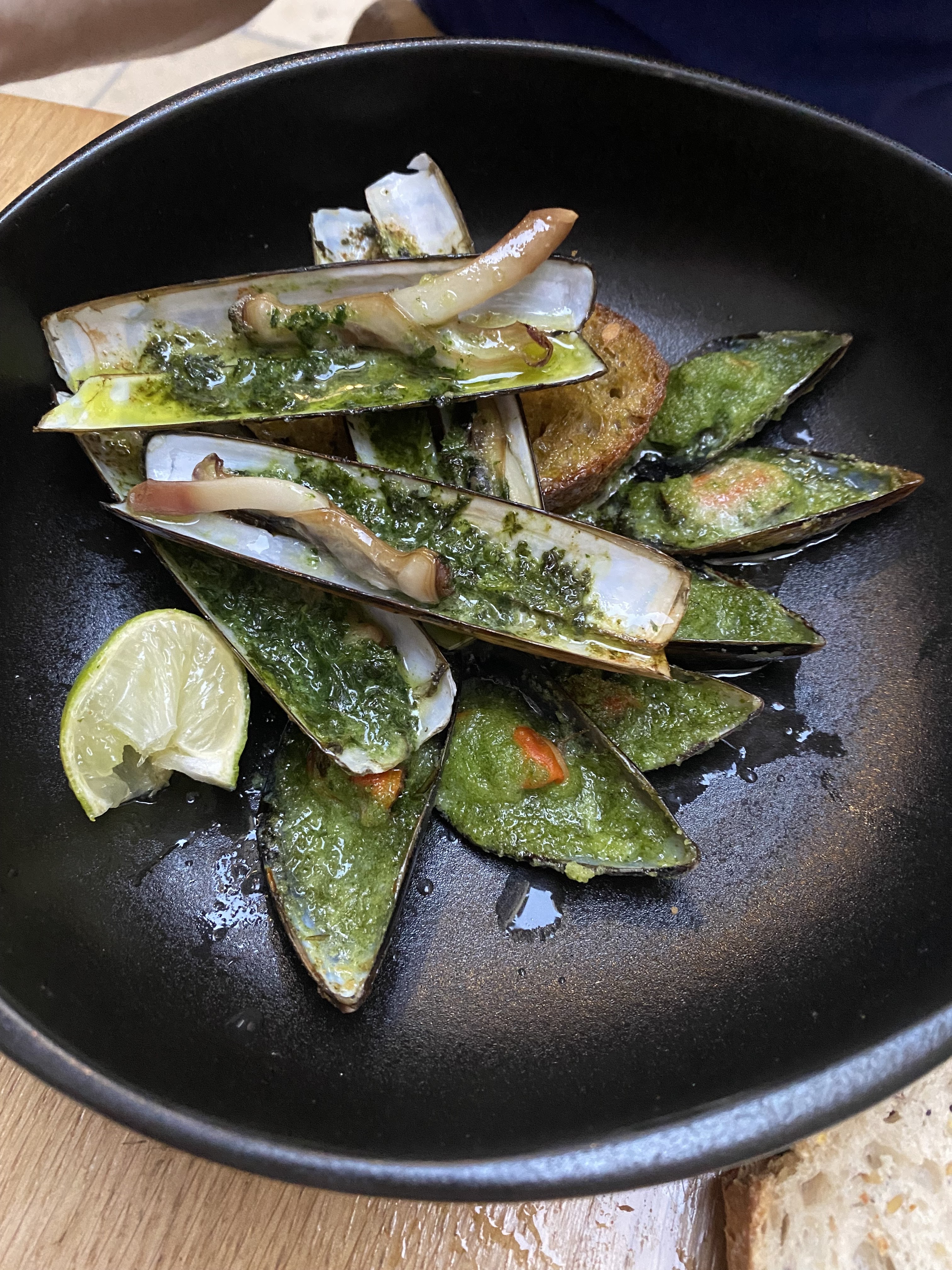 La nourriture et le vin étaient excellents et le service était au rendez-vous. En particulier, les meilleurs plats que nous avons mangés étaient l'entrée de moules au pesto, puis le rosbif avec une incroyable aubergine et pomme de terre marinées. Le seul inconvénient était que j'aurais aimé avoir également commandé le chuletón.