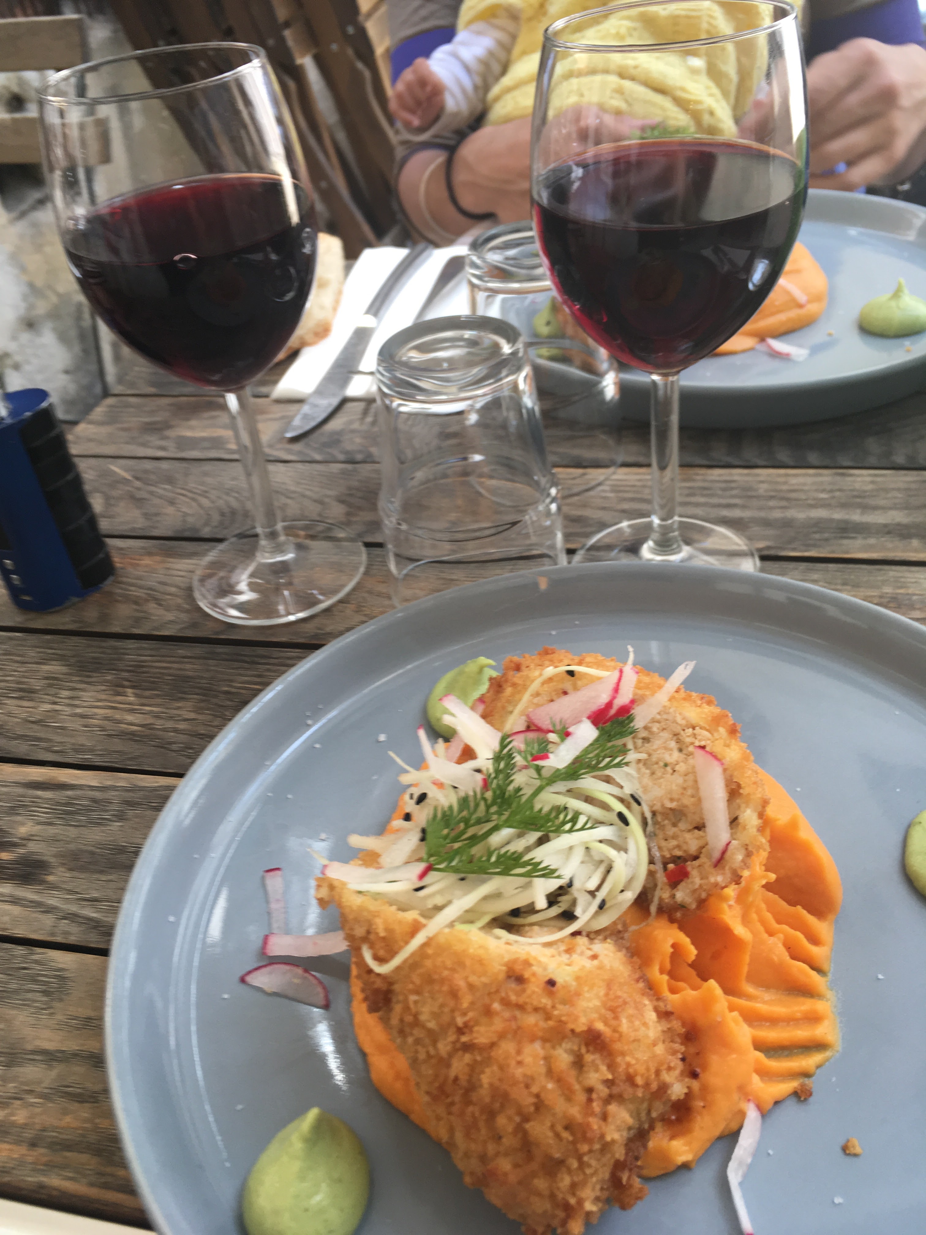 Sans aucun doute l'un des meilleurs repas de notre visite ! Il y a une petite équipe et ils étaient très accueillants et adorables. Le burger au poulet et les pâtes étaient tous deux phénoménaux et ils proposaient de merveilleuses options de vins de la région. Nous avons tellement aimé que nous y sommes retournés deux fois lors de notre visite. Un restaurant fantastique et charmant !!!!