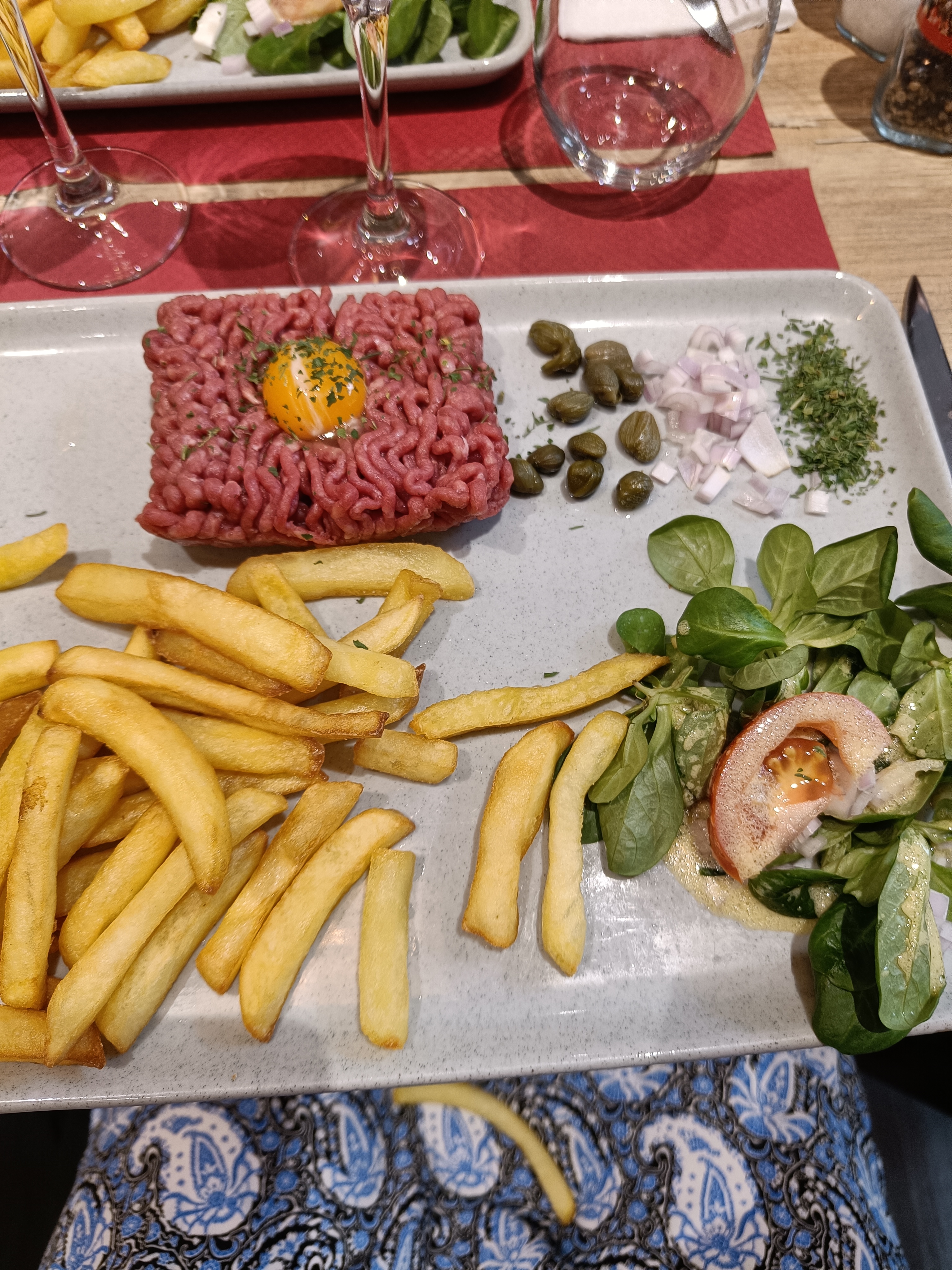 Repas savoureux et très copieux.agreable découverte pour mon mari du filet américain poêlé...un délice.