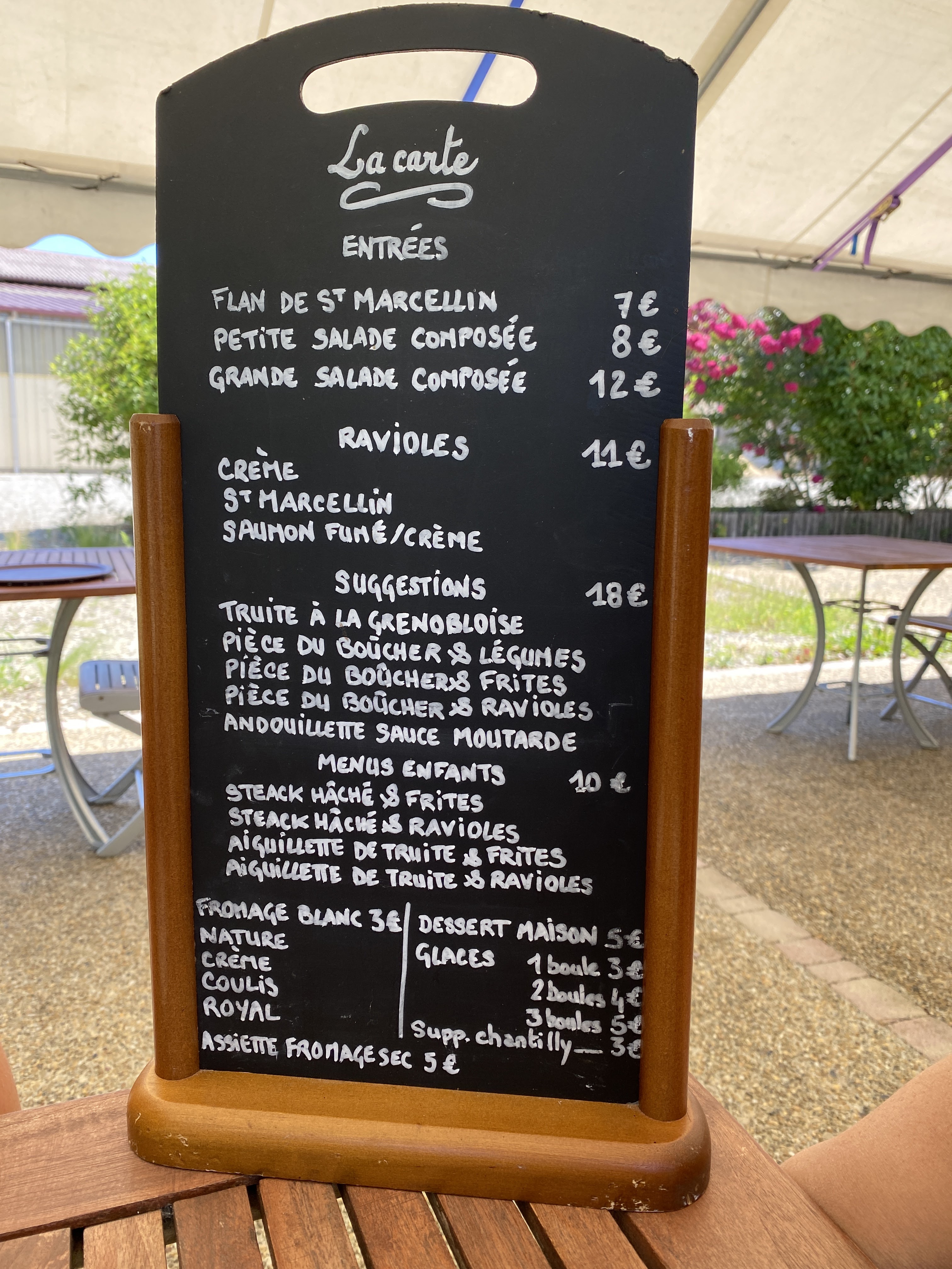 Terrasse ombragée, carte variée très bonnes saveurs(enfin des truites comme on les aime ) personnel et direction très sympa !