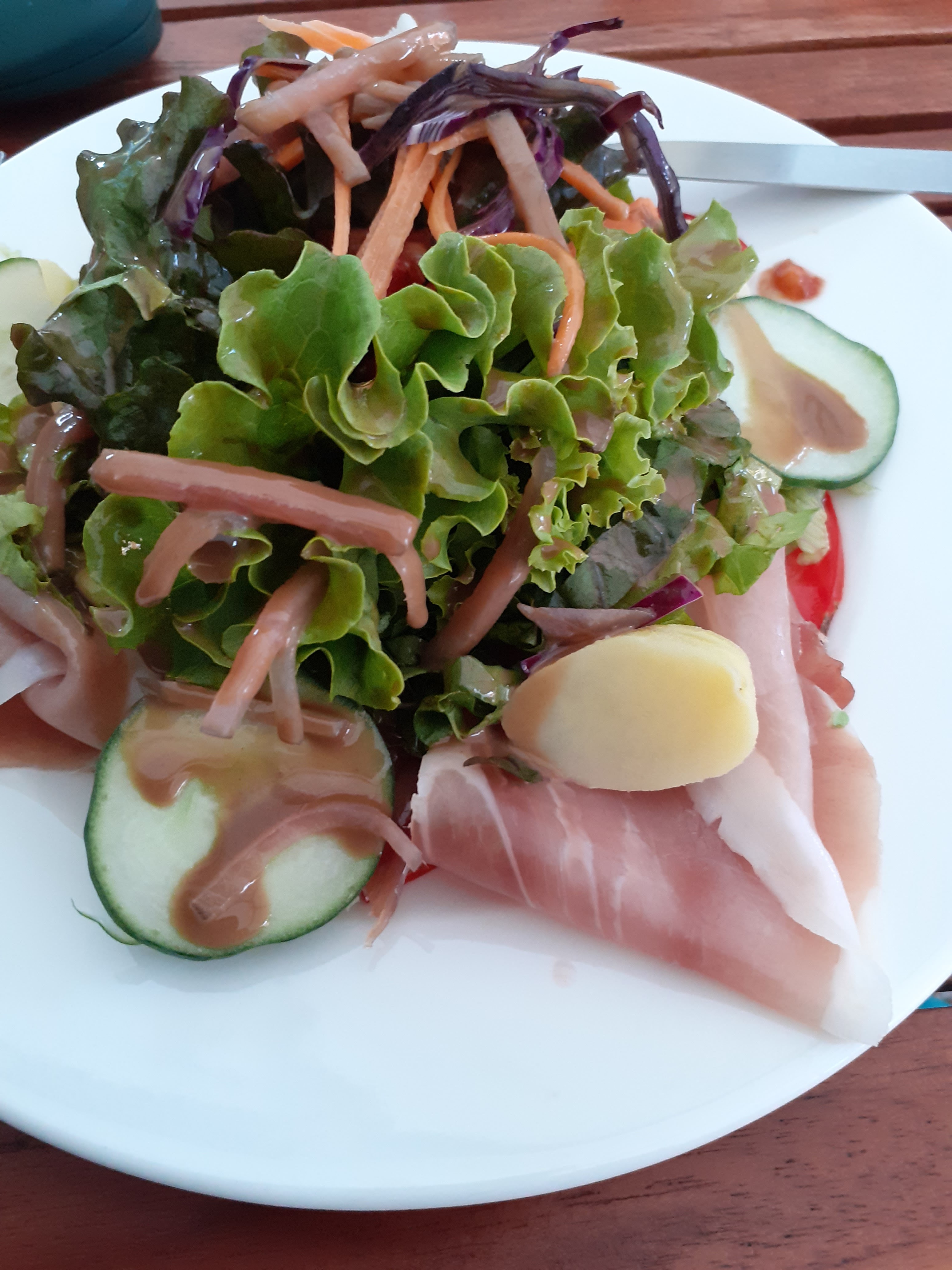 Produits frais....service en terrasse très agréable,quasiment dans les arbres...sympathique