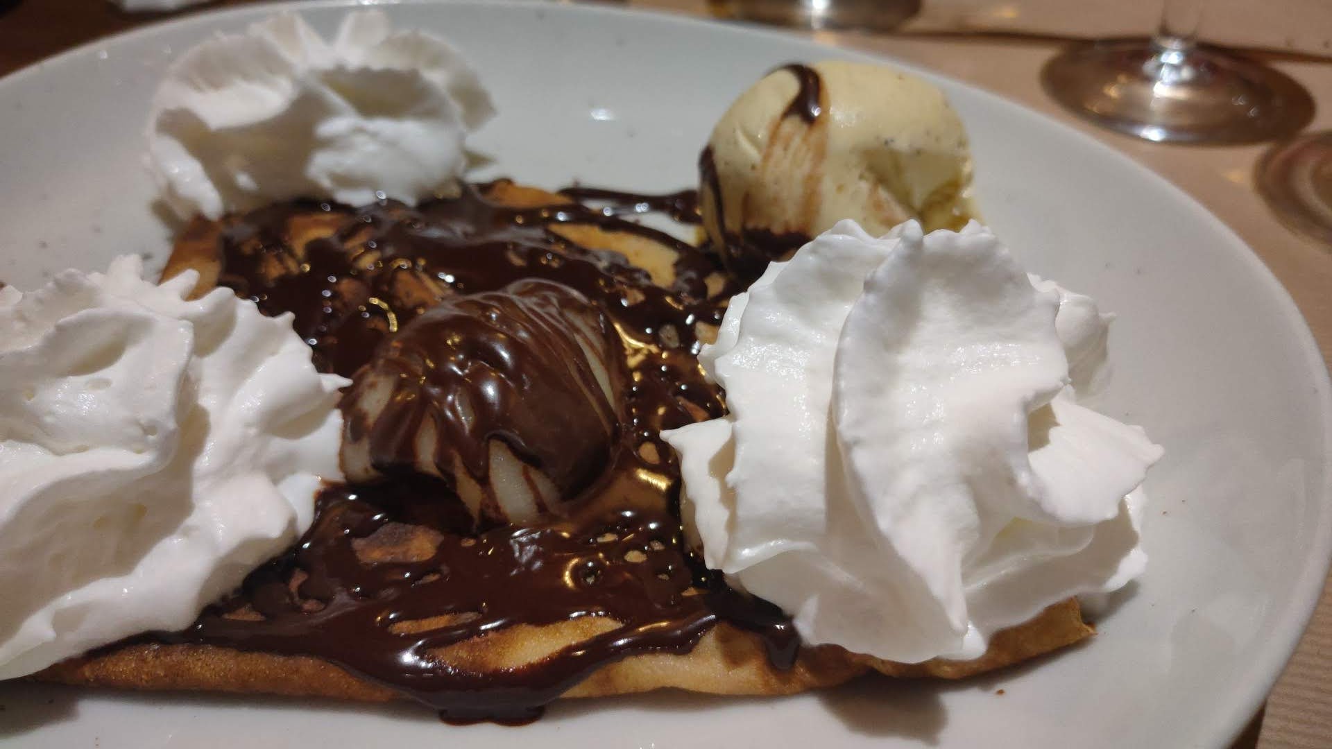 Nous y sommes allés en famille, avec nos 2 filles 2 ans et demi et 3 mois. Nous avons été très bien accueilli, placé dans un coin au calme et pour ne pas déranger le service avec notre nacelle. Plat: filet de bœuf pomme de terre et sauce camenbert. La viande d'une tendresse et délicieuse ! Jambon pomme de terre pour notre fille 👌🏻 Dessert : coupe dame Blanche et banana Split, une bonne portion. La crème fouettée maison délicieuse. C'était un super moment, une régalade 😉!