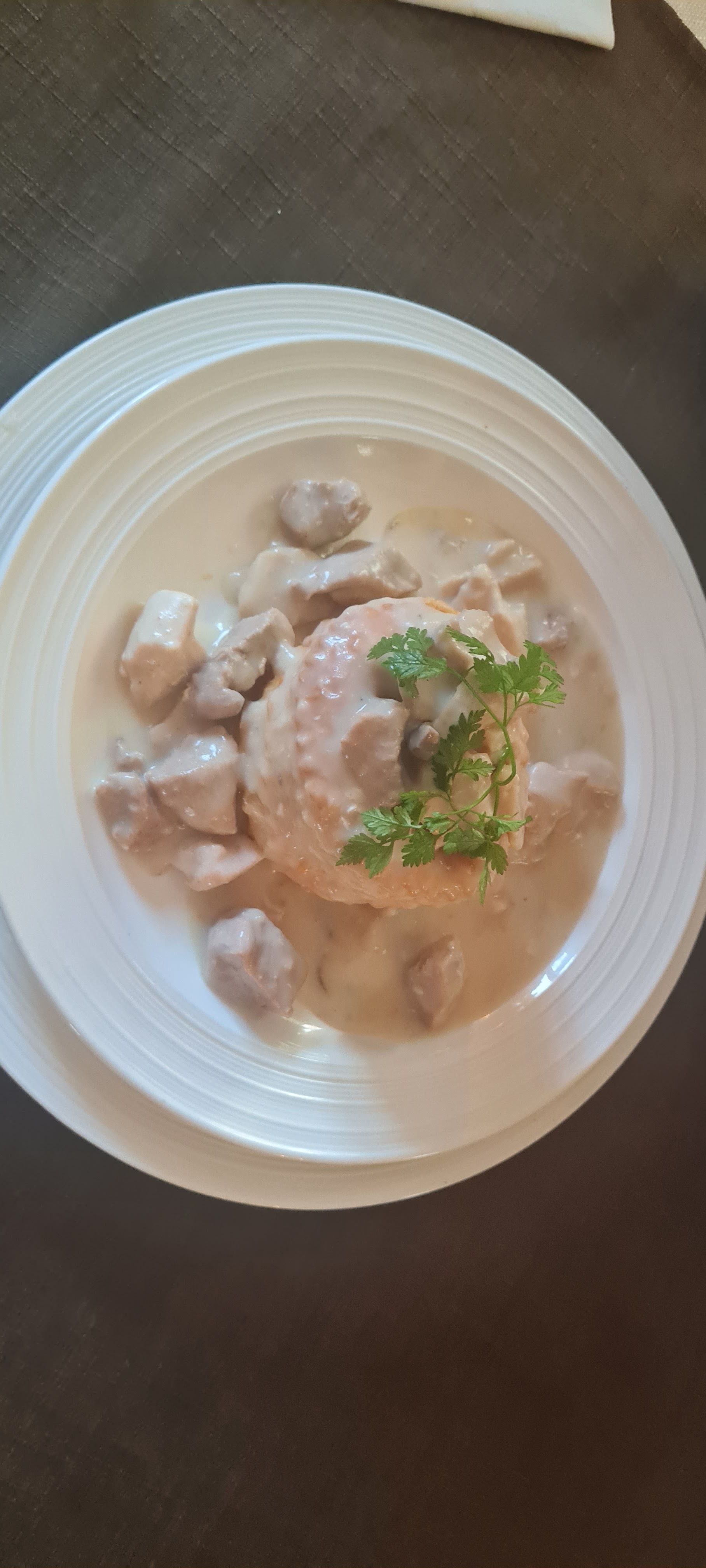Belle surprise dans ce restaurant simple de village. Madame a bien apprécié sa bouchée à la Reine avec ses 3 garnitures. Pour moi le faux filet ANGUS était excellent et fondait en bouche . Service correct et en temps . Prix très raisonnable.. Si vous passez, profitez pour découvrir ce village avec ses belles maisons