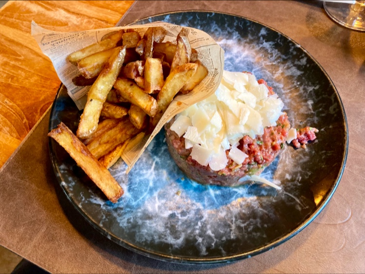 Nous sommes venus manger 2 soirs de suite. Les plats sont excellents. Le tartare est préparé devant nous, c’était un réel régal.
