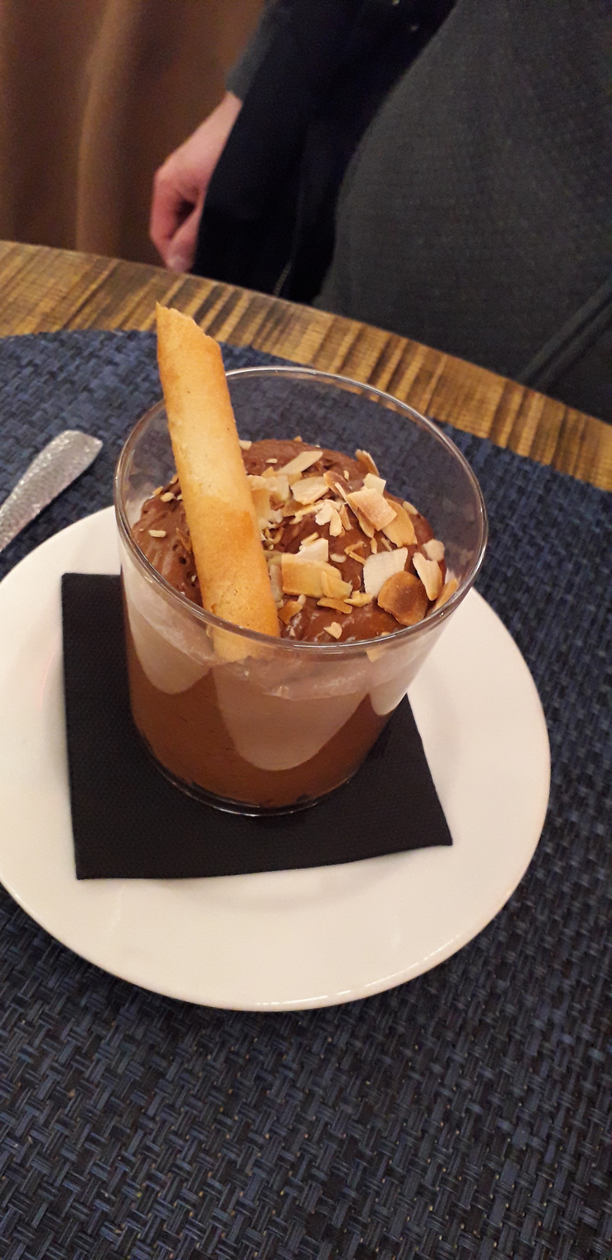 Je n’ai pas aimée le dessert. Un Paris Brest, la pâte à choux à prix l’humidité cuit sûrement l’après midi. La crème mousseline trop de praliné et de beurre. Et la chantilly pas maison. J’ai demandé à changer de dessert il on refuser, le dessert à fini à la poubelle. Dommage car sa commencer plutôt bien. Un petit geste commercial aurais pus être fait. Du coup je reste sur ma fin !