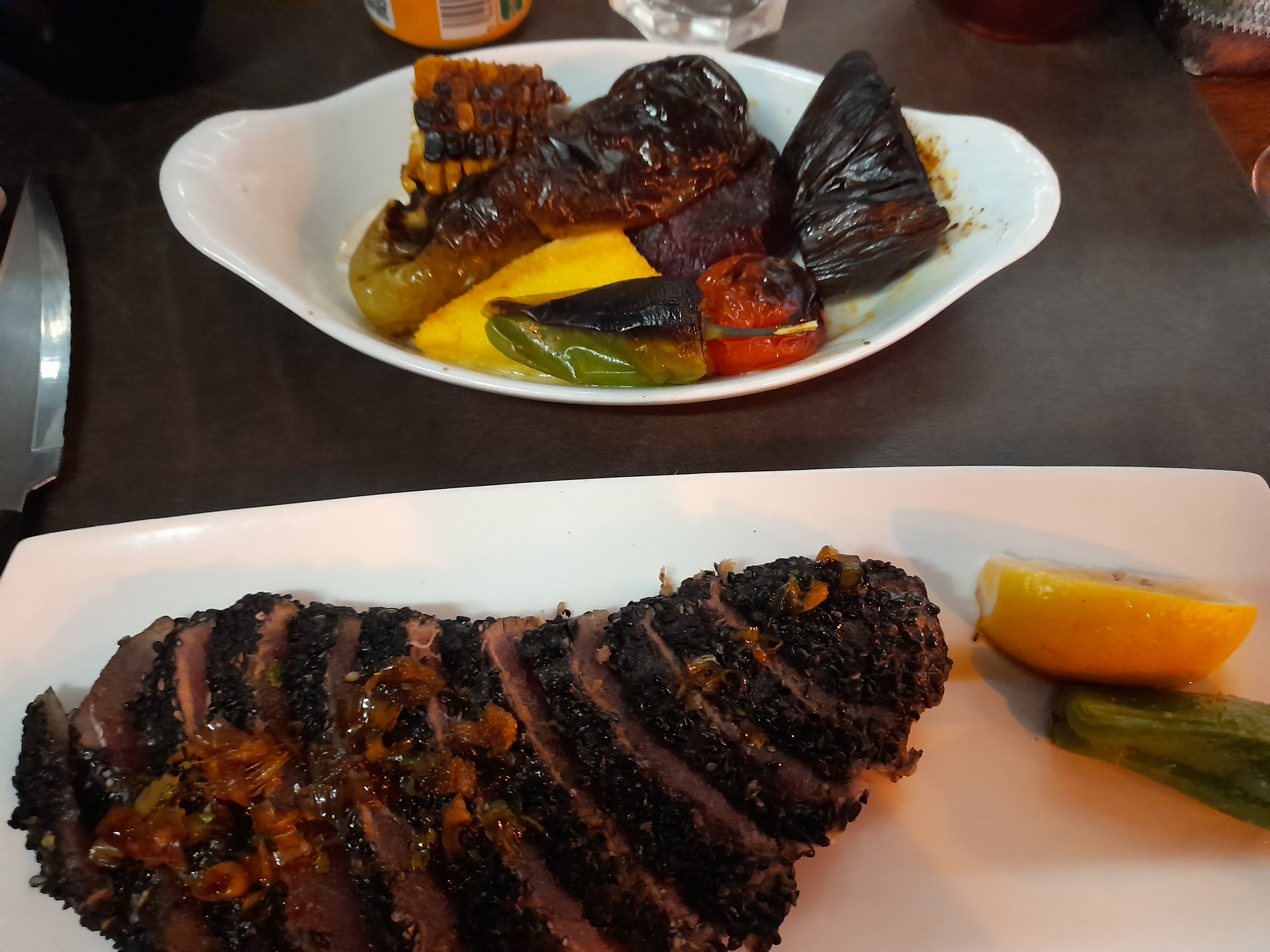 Deuxième fois dans ce restaurant pas trop loin du bords de mer. Spécialités grillades feu de bois. J'ai pris un demi poulet grillé ( c'est un petit poulet) avec des frites et mayonnaise fait maison. Pour le dessert j'ai pris une tarte tatin mais je regrette mon choix. Une étoile de moins pour le service entre le plat et le dessert qui était trop long.