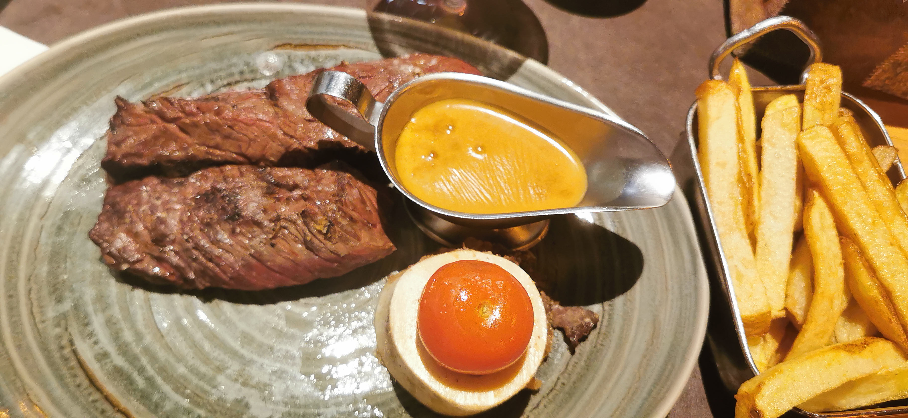 Vraiment excellent, j'ai mangé une bavette, la viande était cuite exactement comme je le souhaitais, l'ambiance est vraiment agréable et le service est rapide, efficace et serviables. J'ai du ranger rapidement car j'étais pressé mais je reviendrai et je prendrai un dessert cette fois là ! Je recommande de réserver en avance