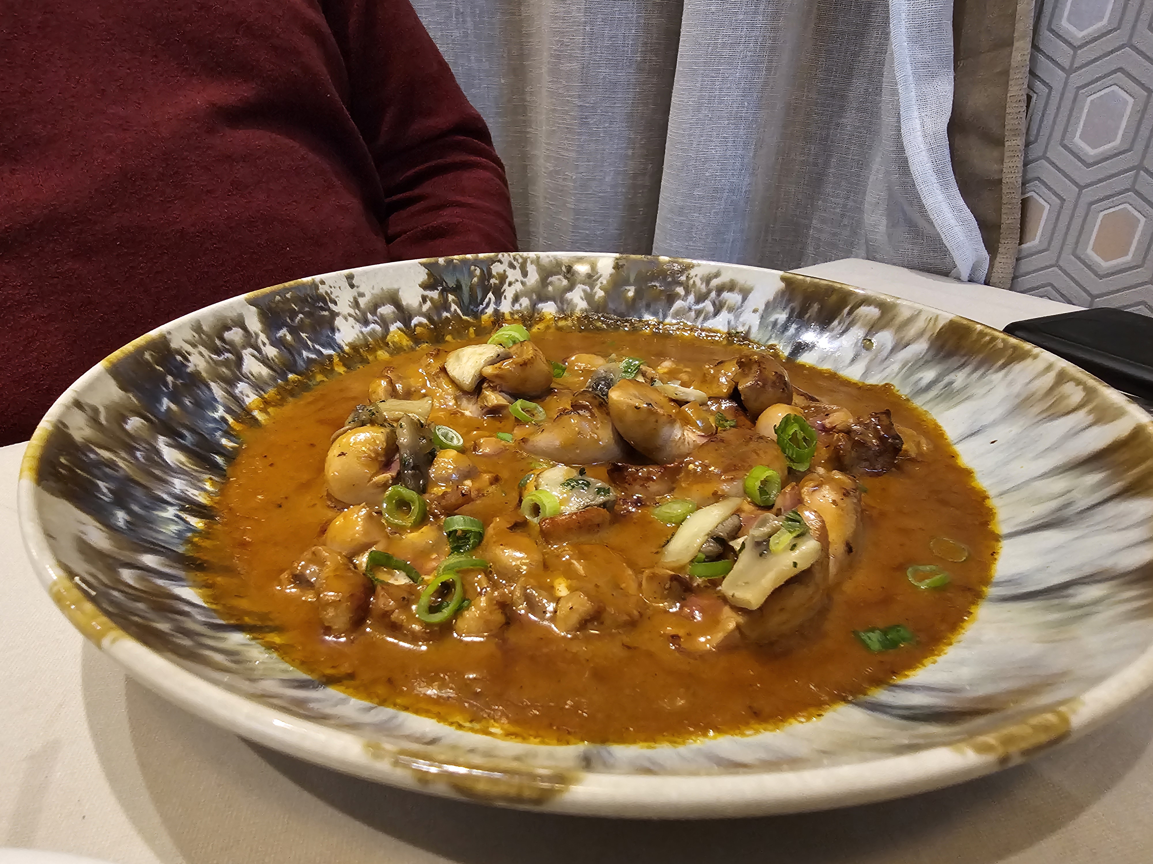 Menu à emporter pour 30€ en cette période de confinement : Soupe de poissons Maison, et qui mérite largement cet adjectif avec beaucoup plus de chair de poisson que de parures. Ris de veau en sauce succulent, parfaitement nettoyés des membranes qui les entourent, et une île flottante délicieuse pour finir. Conclusion : triplement satisfait par un accueil chaleureux, de soutenir un restaurateur en cette période, et de me régaler pour un prix correct.