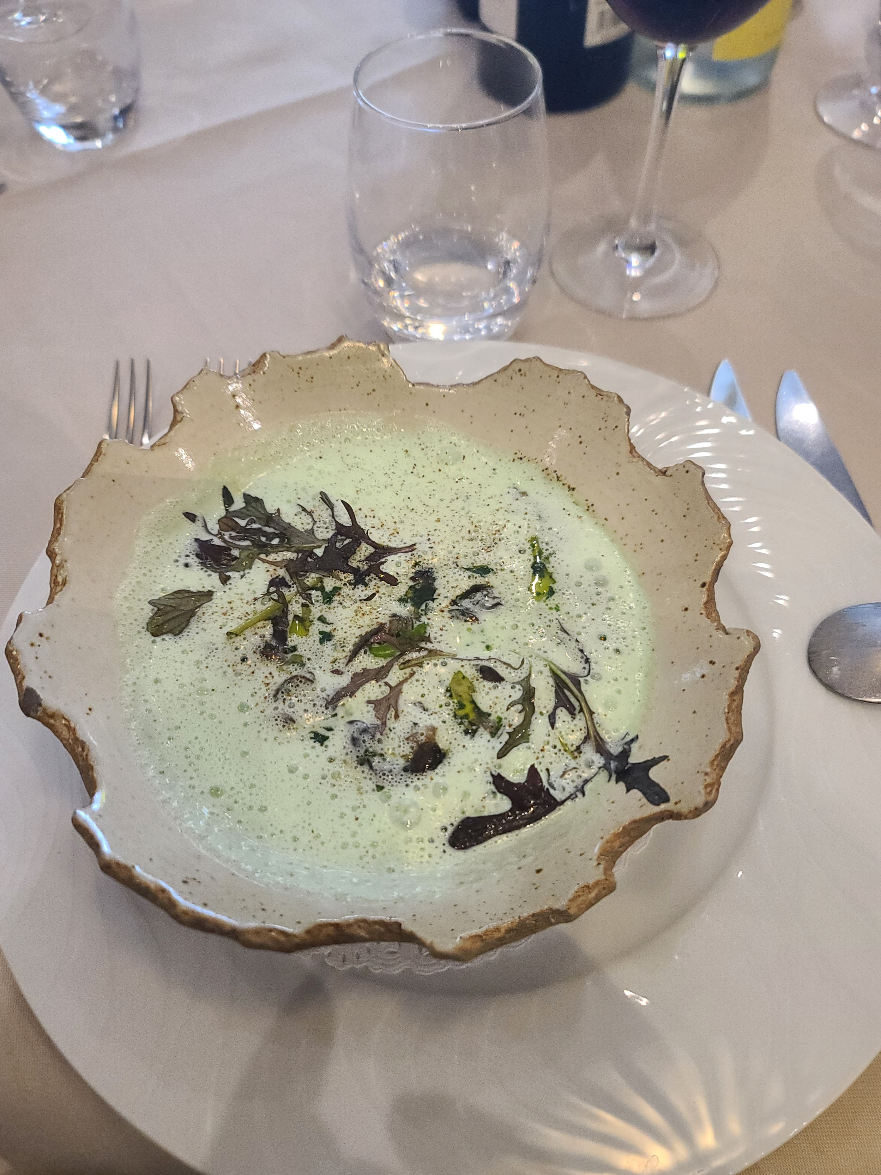 Restaurant gastronomique accessible, servant une cuisine raffinée non ostentatoire, ce qui nous convient parfaitement. Nous étions 6 à table dont une végétarienne. Le chef a improvisé un plat de légumes très savoureux. Il est dommage qu'il n'y ait pas un plat végé au menu, mais il s'est adapté pour notre plus grand plaisir. A refaire