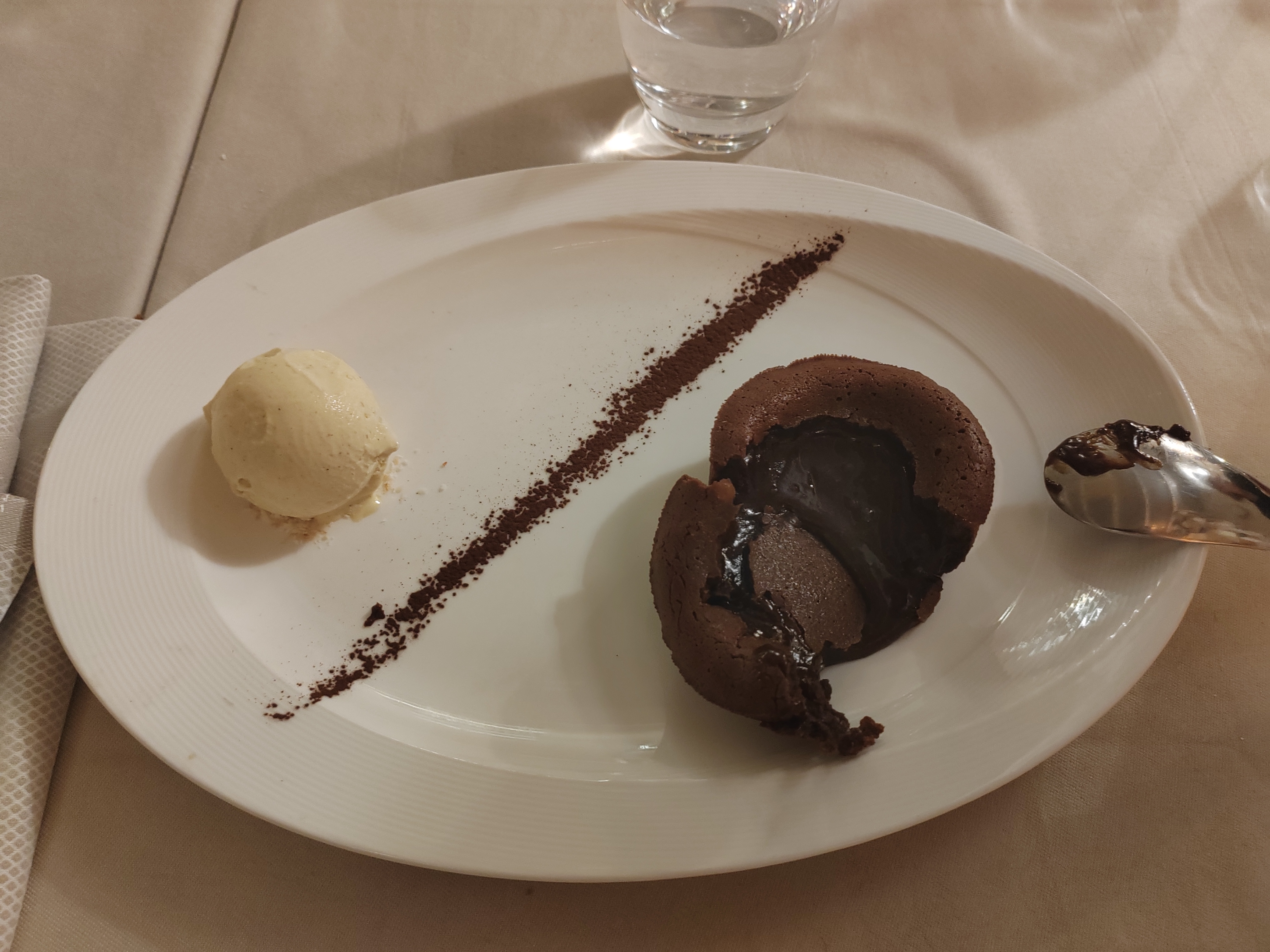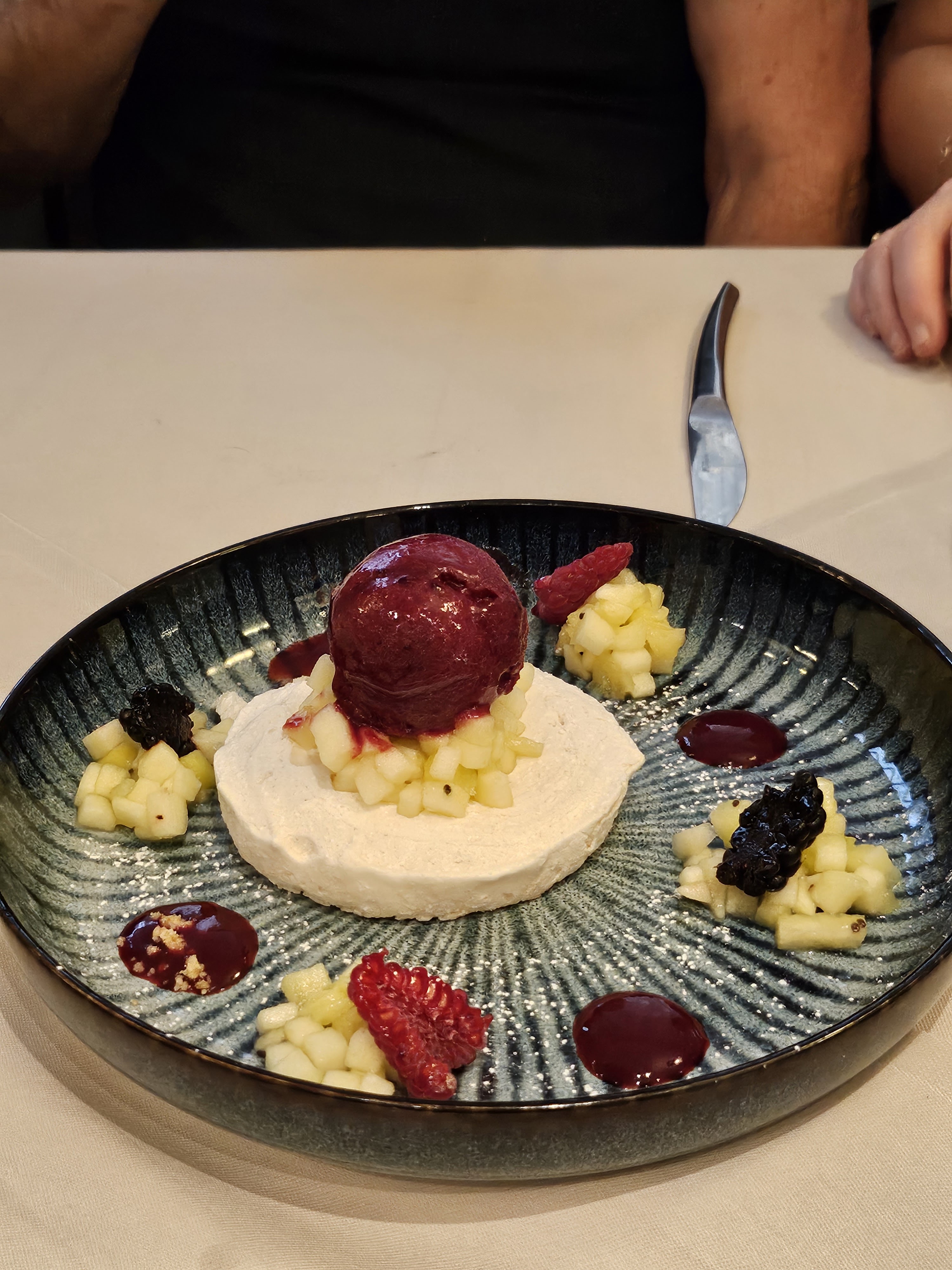 Dîner très sympa pour un anniversaire, suite à ma demande, le chef a préparé un gâteau en forme de coeur 💓, belle intention de sa part. On y reviendra.