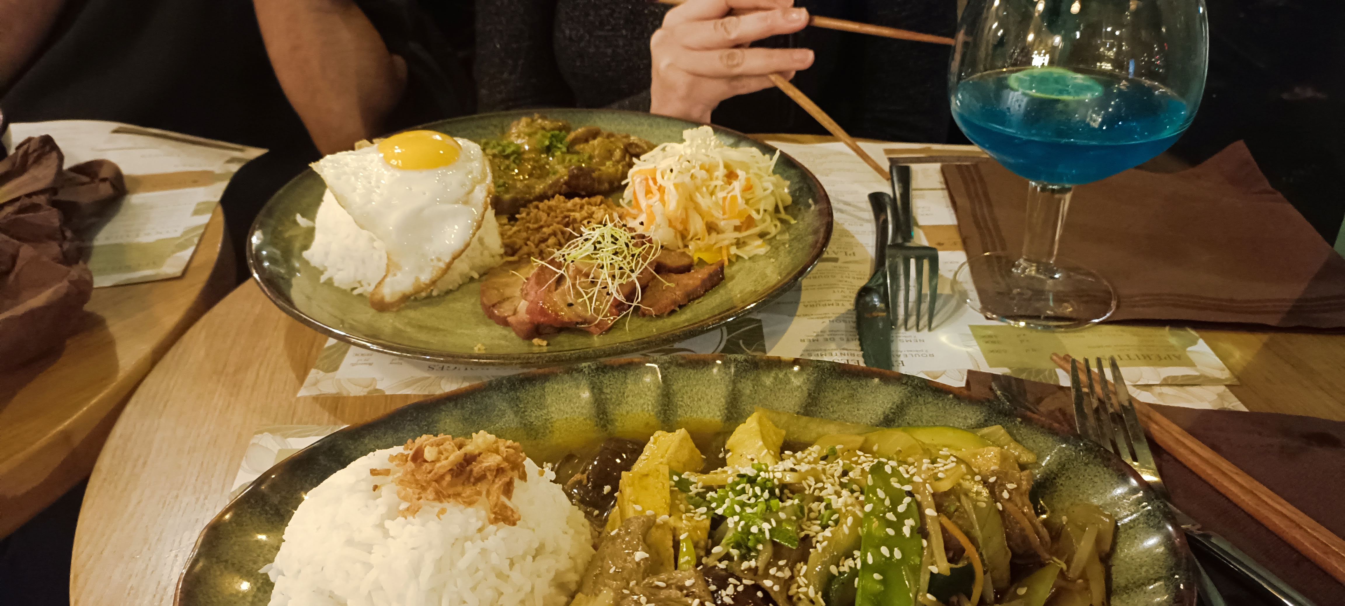 Nous sommes venus pour dîner, il faut bien penser à réserver. La déco est minimaliste mais jolie. Les plats sont copieux. Mention spéciale aux nems de l’entrée qui étaient excellents.