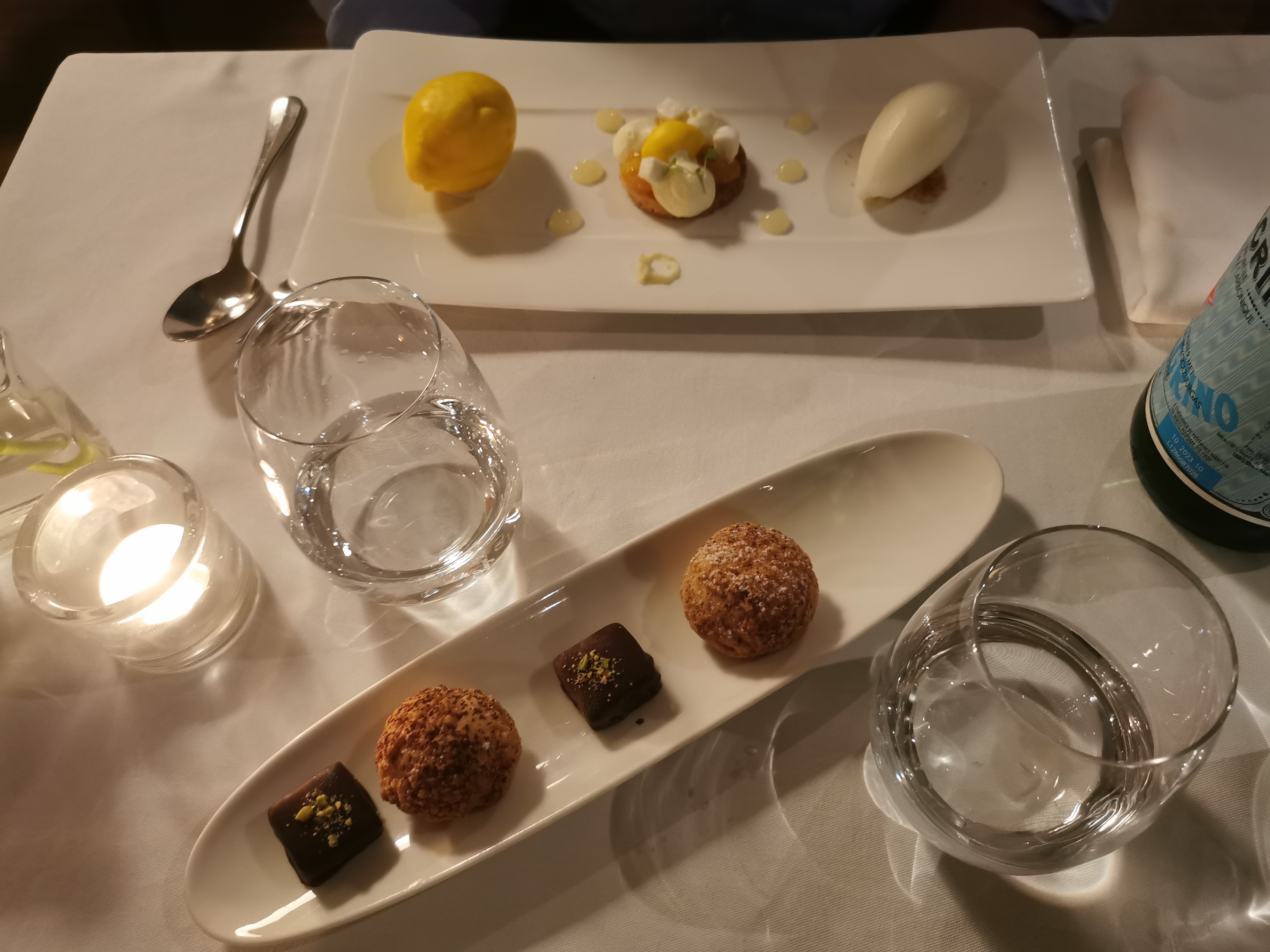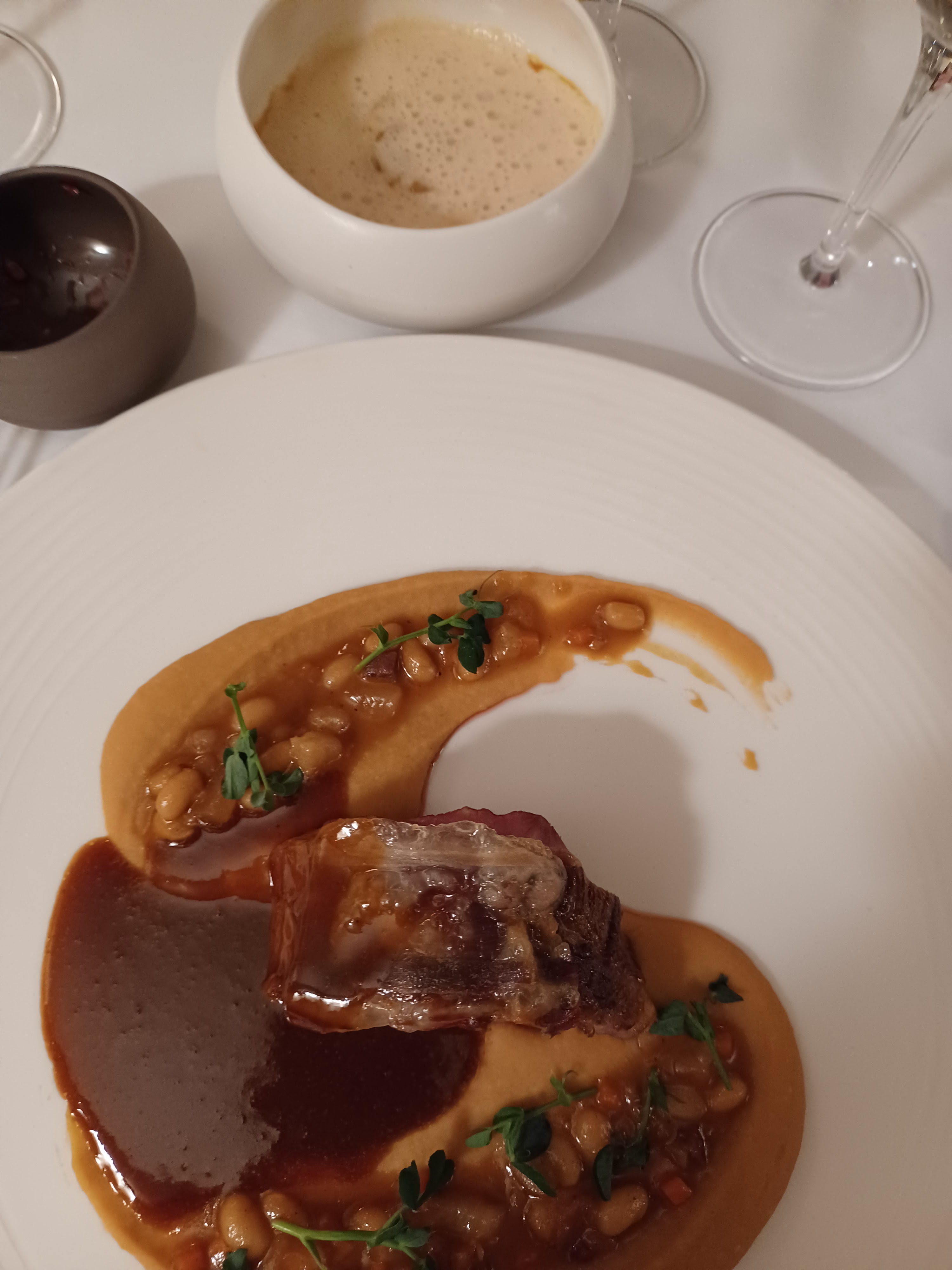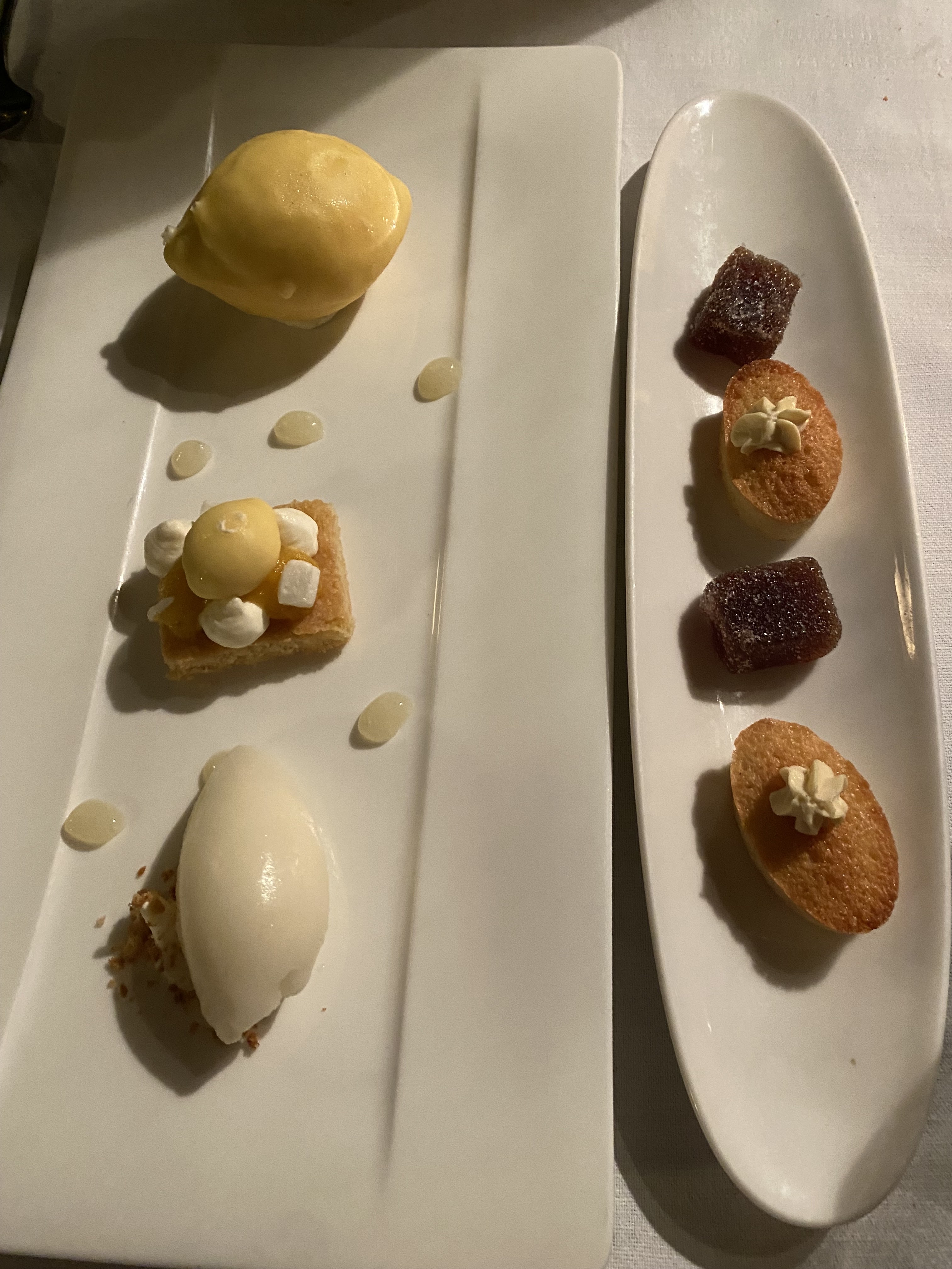 J'ai beaucoup aimé l'ambiance du restaurant. Le service était chouette. Concernant la nourriture j'espérai sans doute plus pour un restaurant gastronomique. L'amuse bouche était plat, il manquait de texture et un brin d'assaisonnement. La suite était quand même très savoureuse et gourmande. J'étais avec un ami, on se faisait goûter nos plats ! En tout cas le dessert était une Master class, avec ce fameux citron en différentes déclinaisons et en trompe l'œil. Y reviendrais-je ? Par curiosité