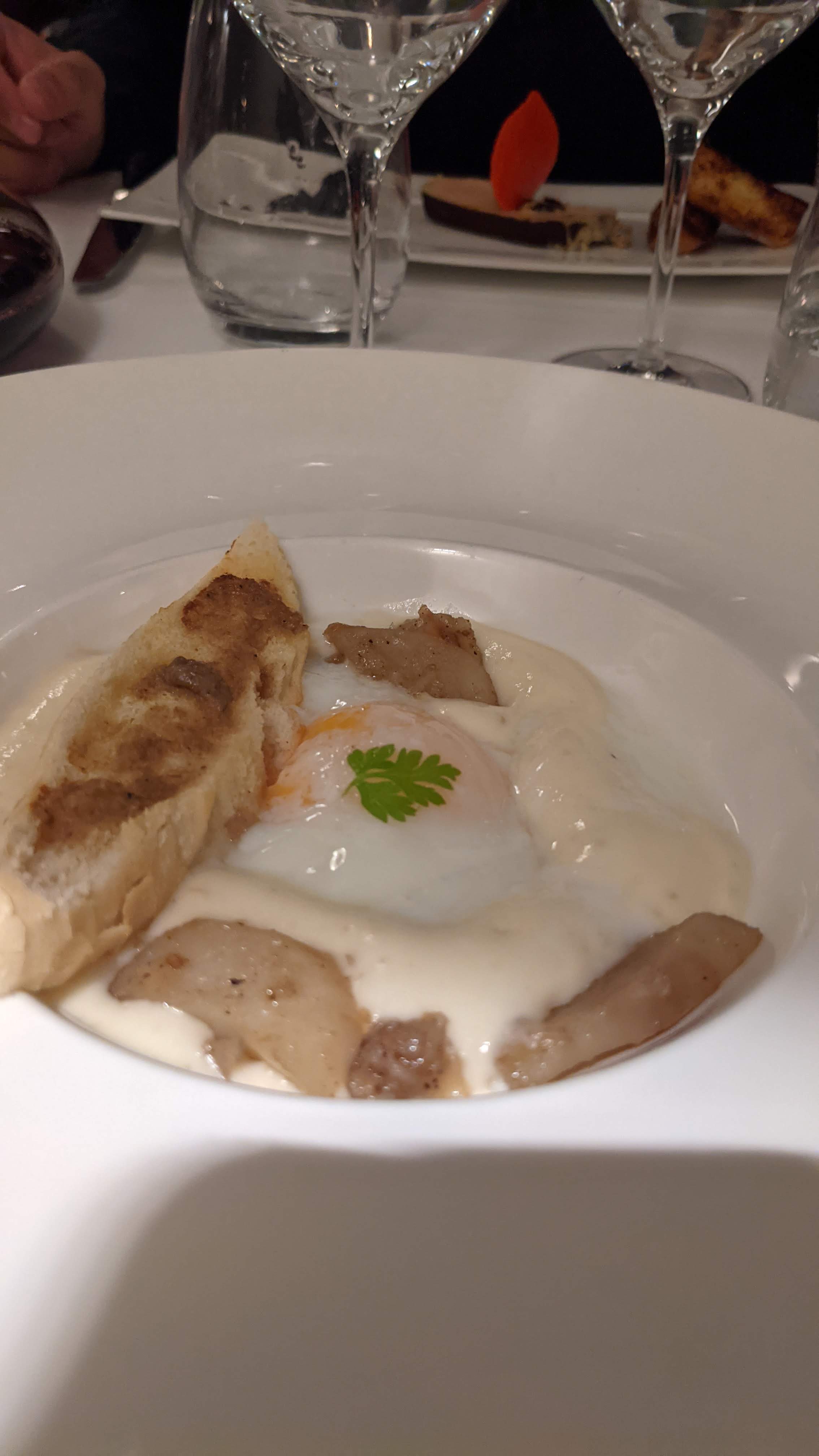 Endroit fantastique. J'ai adoré la nourriture et la présentation. Ils ont préparé pour ma femme une sauce spéciale sans beurre. Assis dehors par une chaude nuit française, regardant les projecteurs, illuminez la cathédrale.