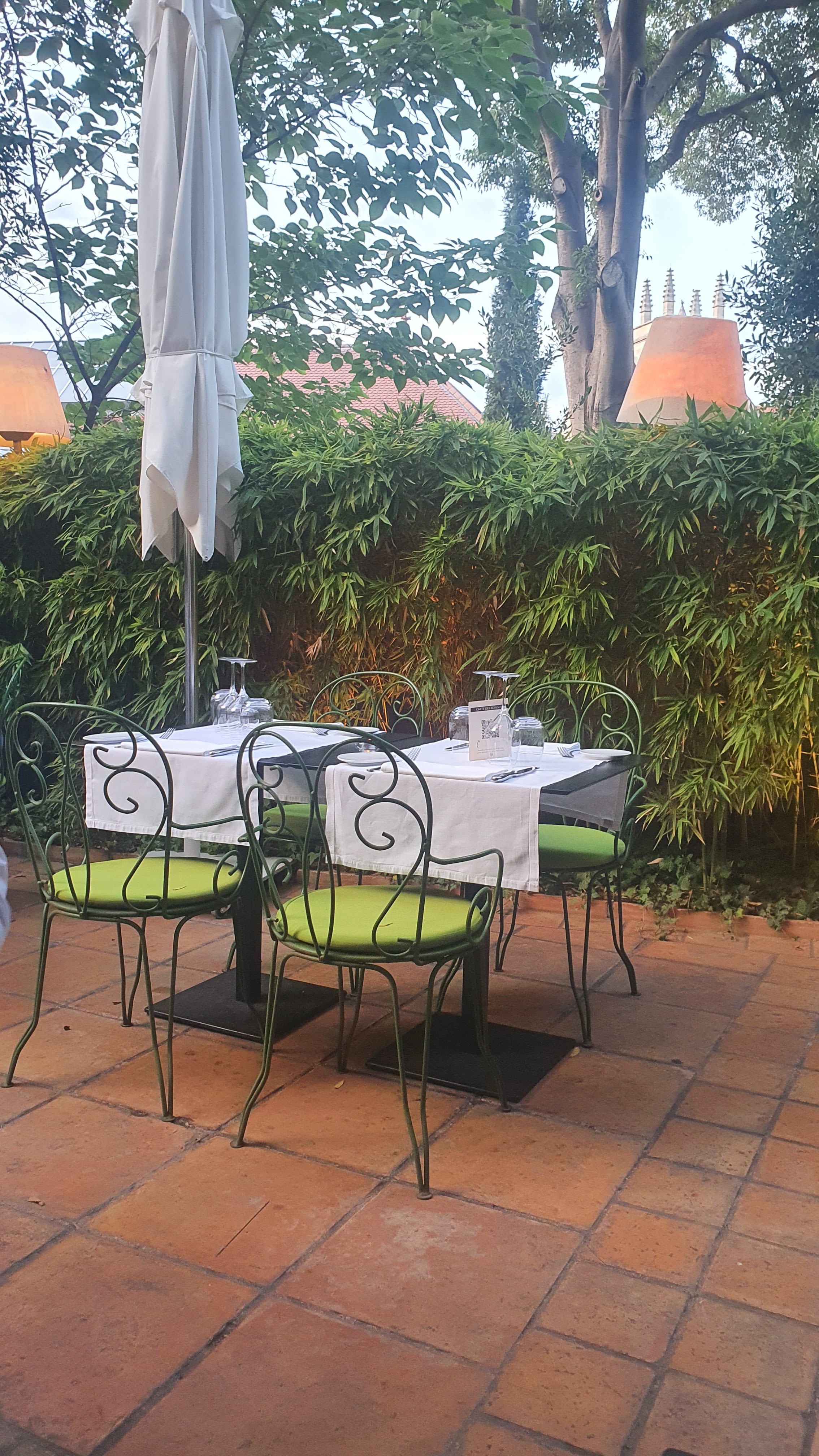 Nous avons passés un excellent moment dans ce lieu. Parfaitement accueilli, service impeccable. Un personnel qui se soucis de la satisfaction de son client et très agréable. Pour le côté cuisine, des plats élaborés et non avare de saveurs, nous avons pu d'ailleurs discuter avec le chef, très passionné et on le ressensà la dégustation ! Pour terminer, mais quel jardin fabuleux qui nous transporte loin de la ville en plein centre ville, c'est dingue ! Je recommande ce lieu les yeux fermés.
