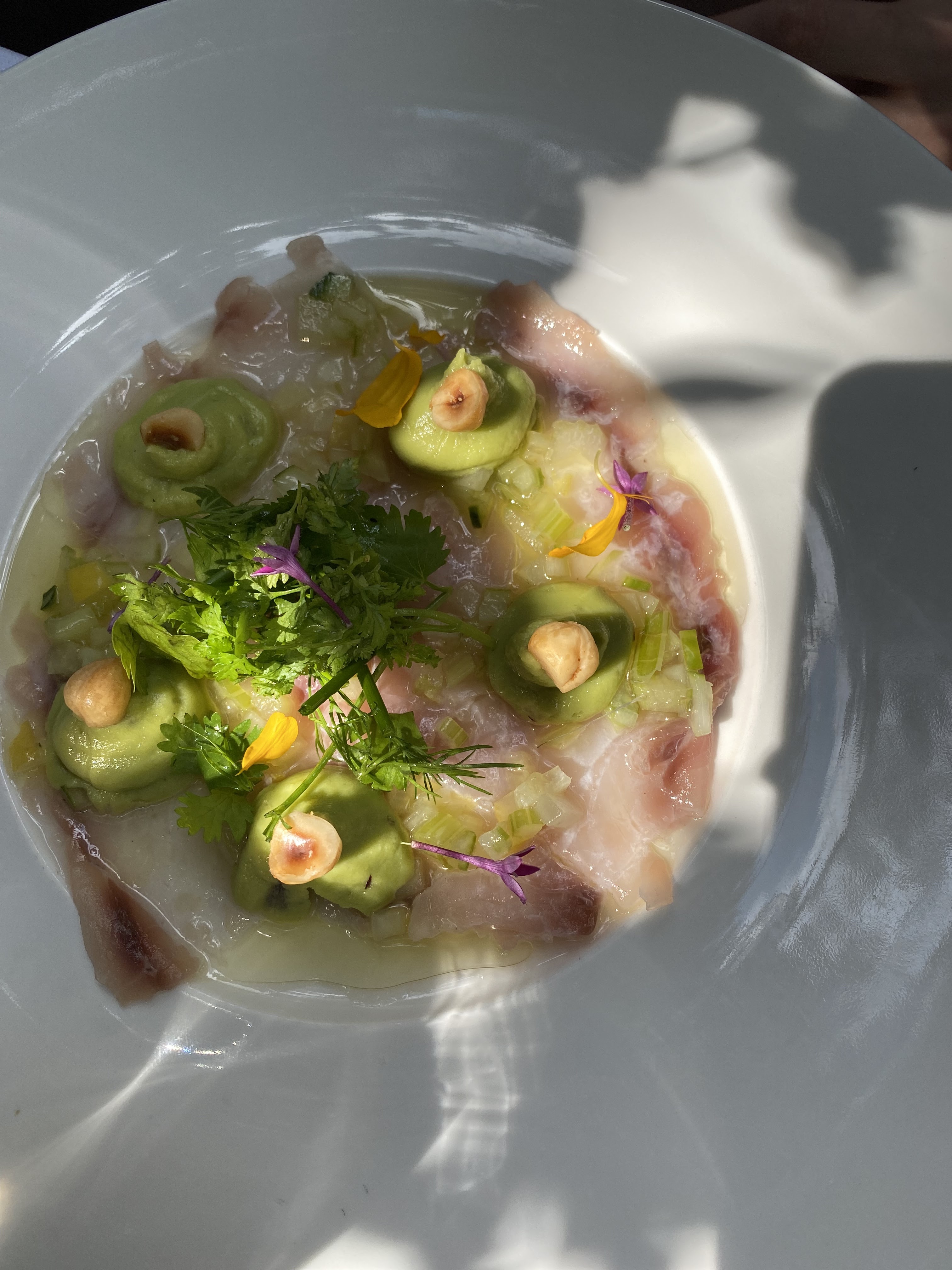 J’aurais aimé mettre 3,5 voir 3,7 mais ce n’est pas possible , alors je m’explique: Cadre magnifique, le paradis en centre ville de Montpellier l’accueil et service - rien a dire Mais - gaspacho avec des croûtons molles pour amuse bouche …. Pas possible . Entrée asperges excellente mais les raviolis aux crabe - pâte maison mais trop épaisse donc pâteuse. De la lotte en plat , cuisson parfaite mais pas d’explosion de saveurs, il me manquait la fraîcheur, le peps , le petit truc qui vous dit - ouais! Alors je vais certainement revenir pour donner une deuxième chance , en attendant je suis honnête 😓