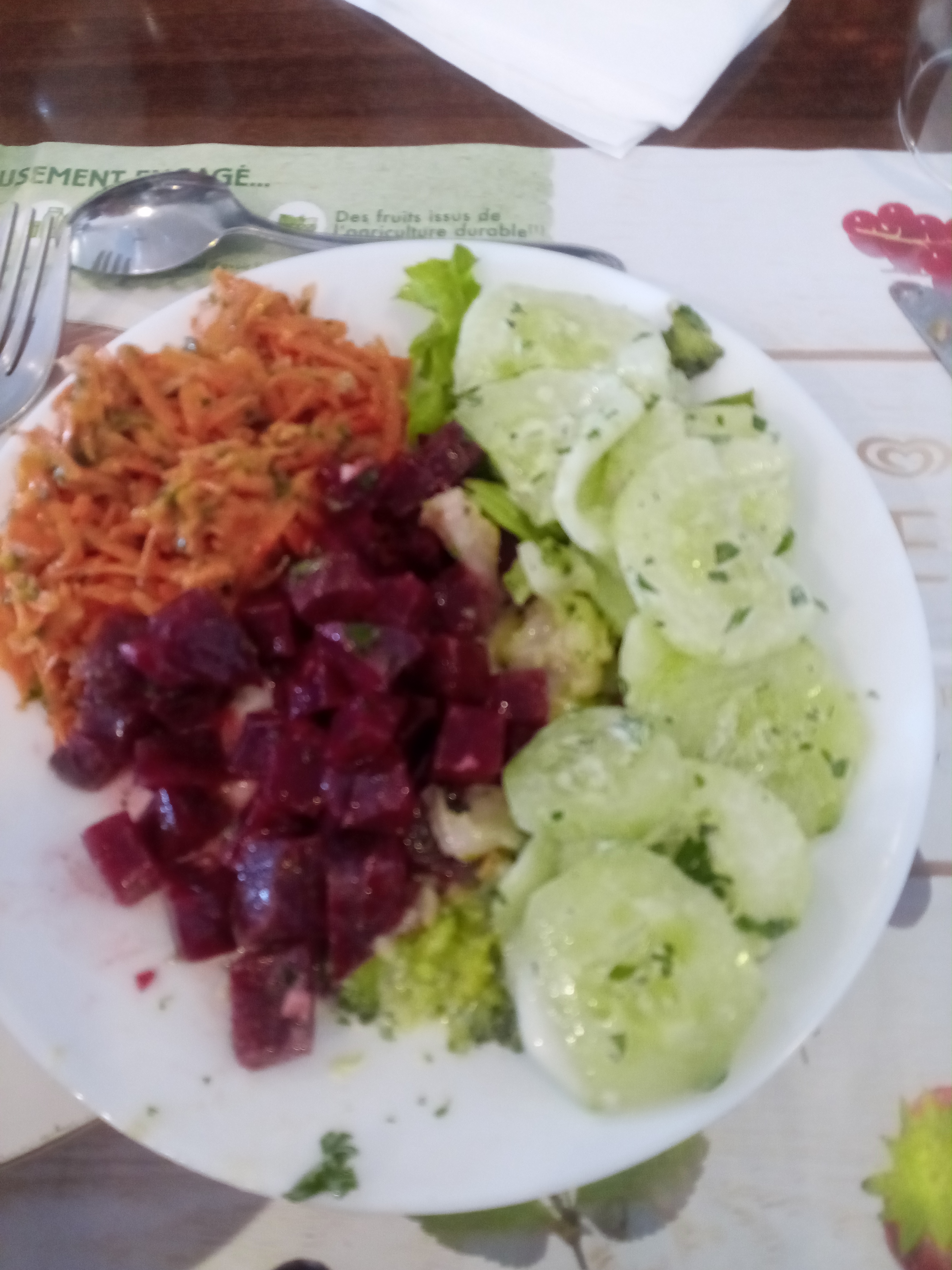 Choix de 3 entrées et 3 plats principaux. Garez-vous un peu plus loin dans un silence complet.