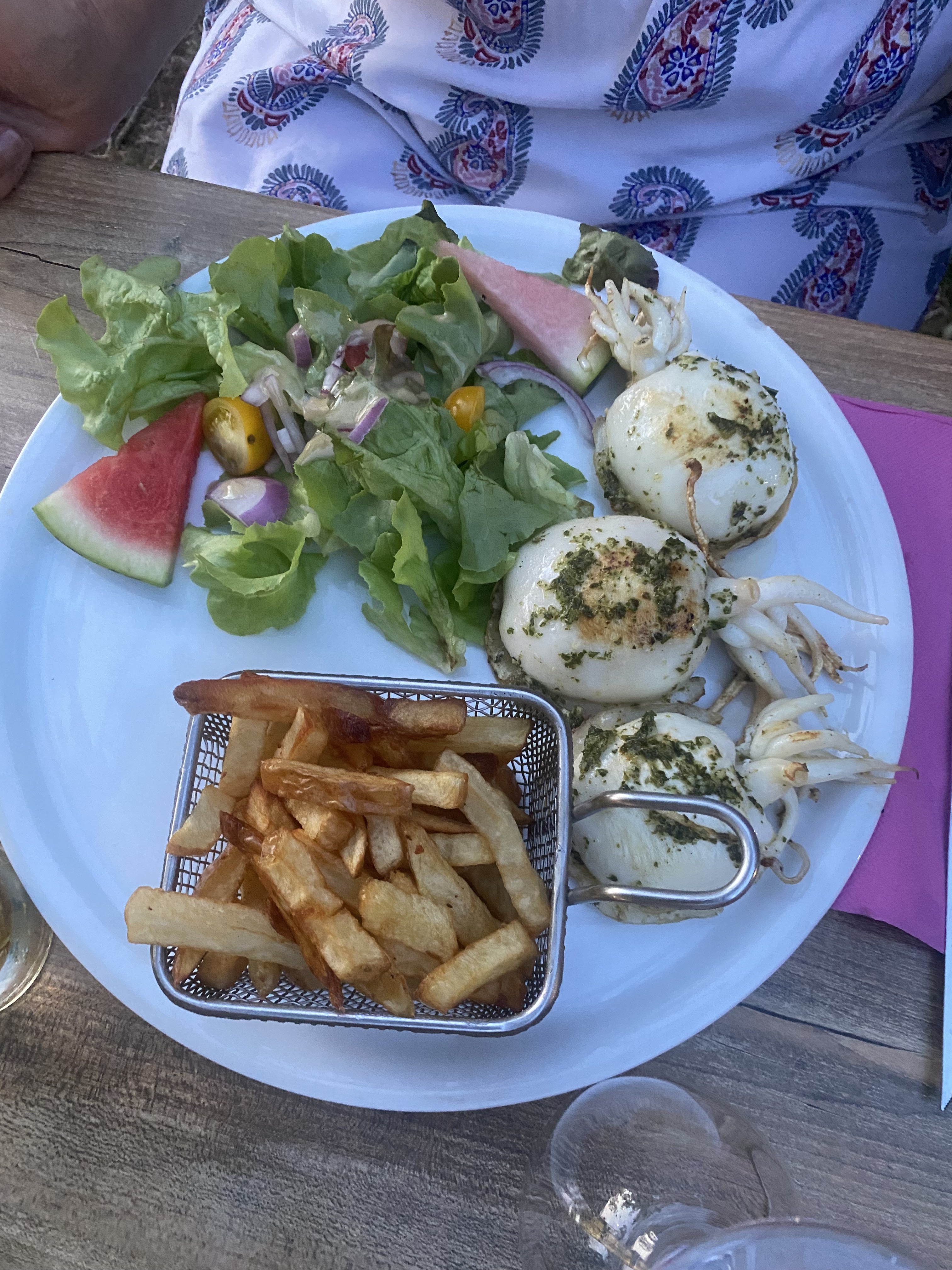 Excellent assiette tres copieuse. Perso j ai pris des séchés a la plancha meilleurs qu en bord de mer.
