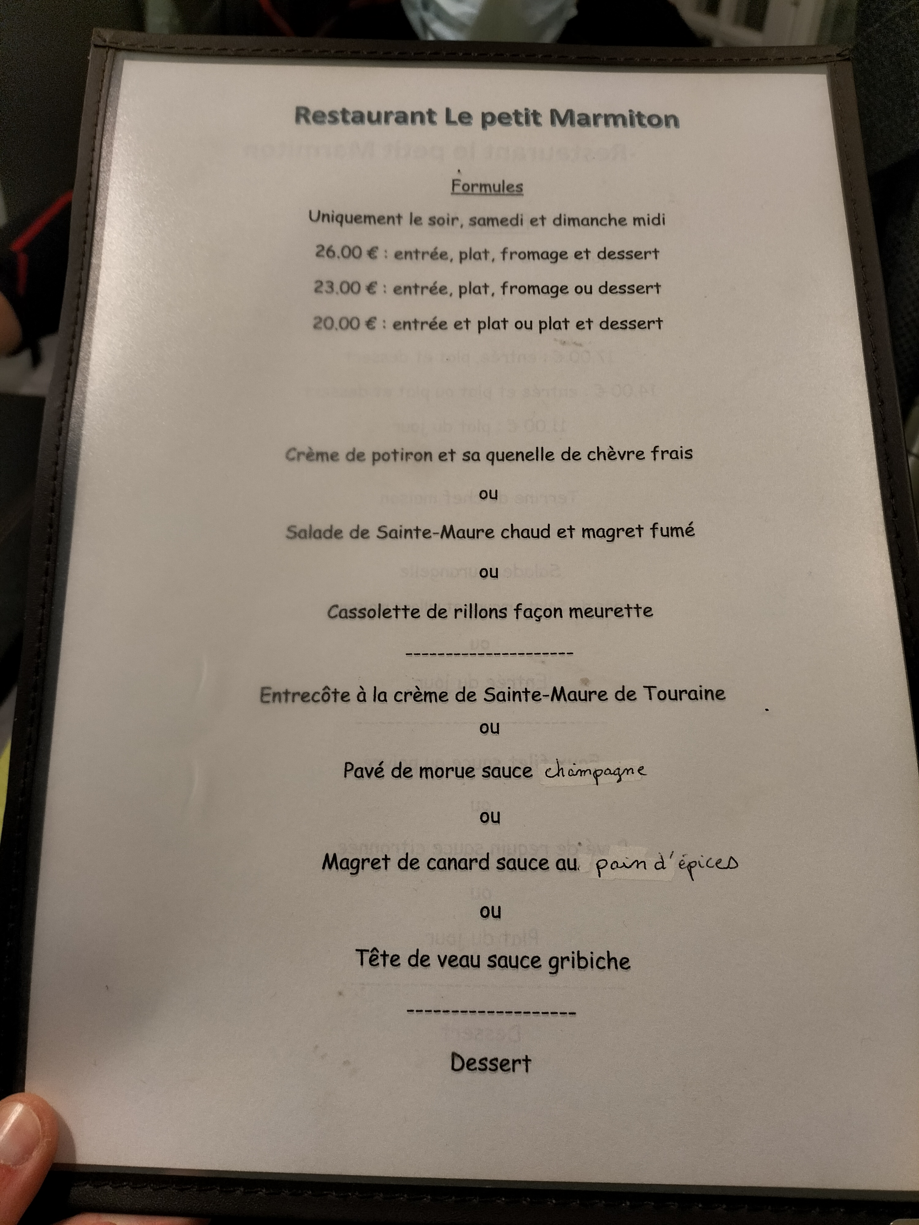 Je me suis régalé avec le nougat de Touraine (en fait du fromage de chèvre avec des fruits secs) et la tête de veau. Service rapide et agréable.