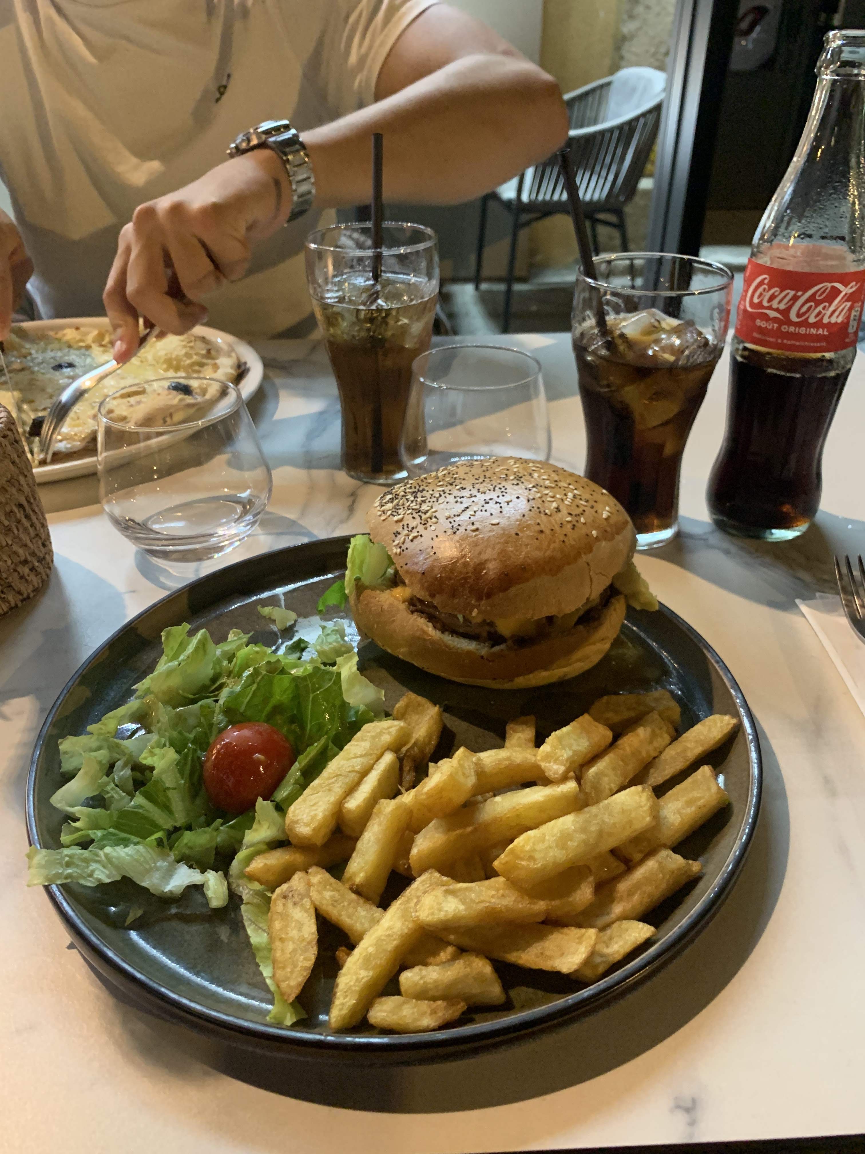 Dîner en couple dans ce lieu très sympathique du centre de Bastia. Nous avons mangé deux burgers (très bons) et commandé du tiramisu en dessert (vraiment spectaculaire !). Conseiller.