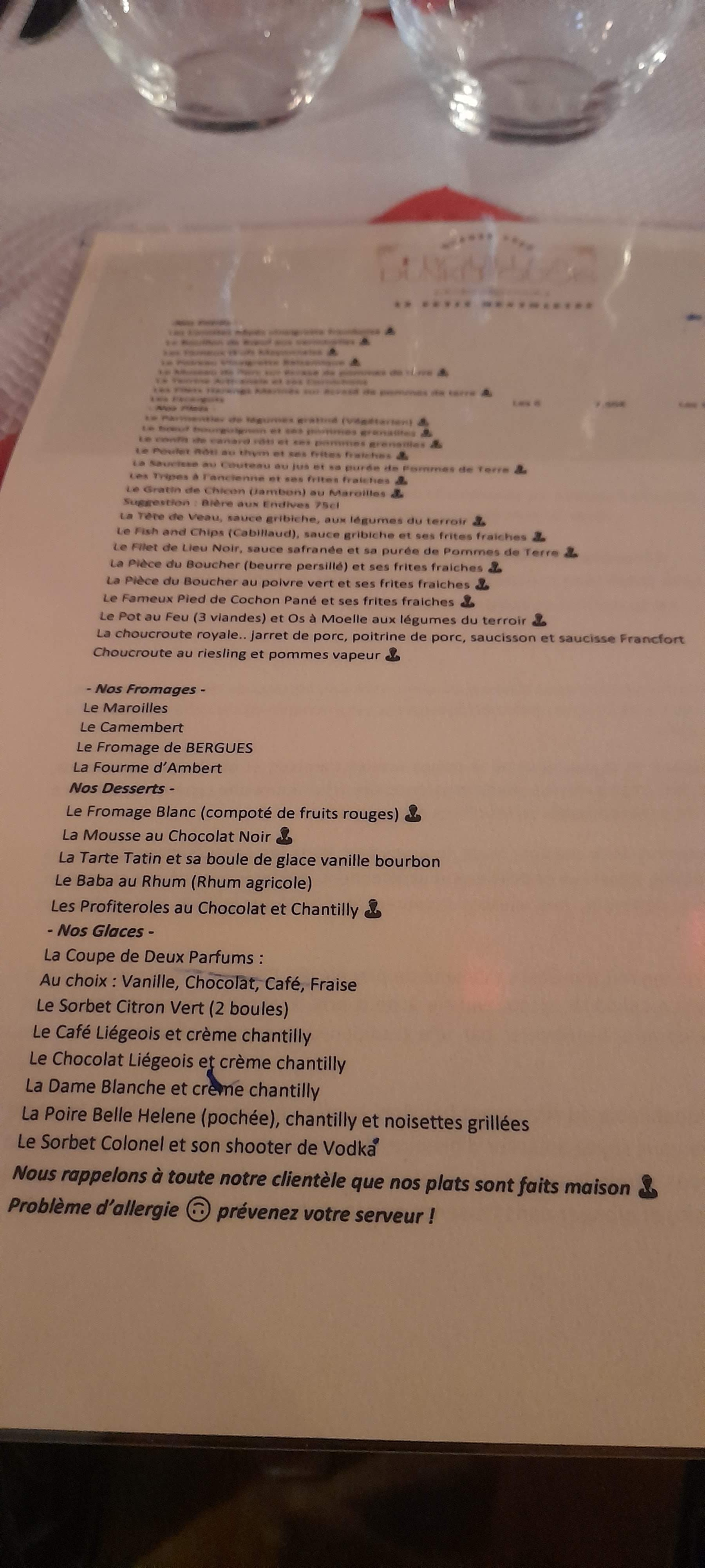 Une adresse hors du temps! Beaucoup de bienveillance dans l’accueil et le service. Véritable tour de force d’offrir à des prix plus que démocratiques une carte qui fleure bon des temps anciens. J’ai du mal à comprendre les critiques sur la qualité de la cuisine, à croire que certains ne font pas les courses en cette période de forte inflation. ( petit bémol tout de même pour les profiteroles, vraiment très sèches et peu goûteuses) Merci à toute votre équipe pour cette très bonne soirée. Nous reviendrons.