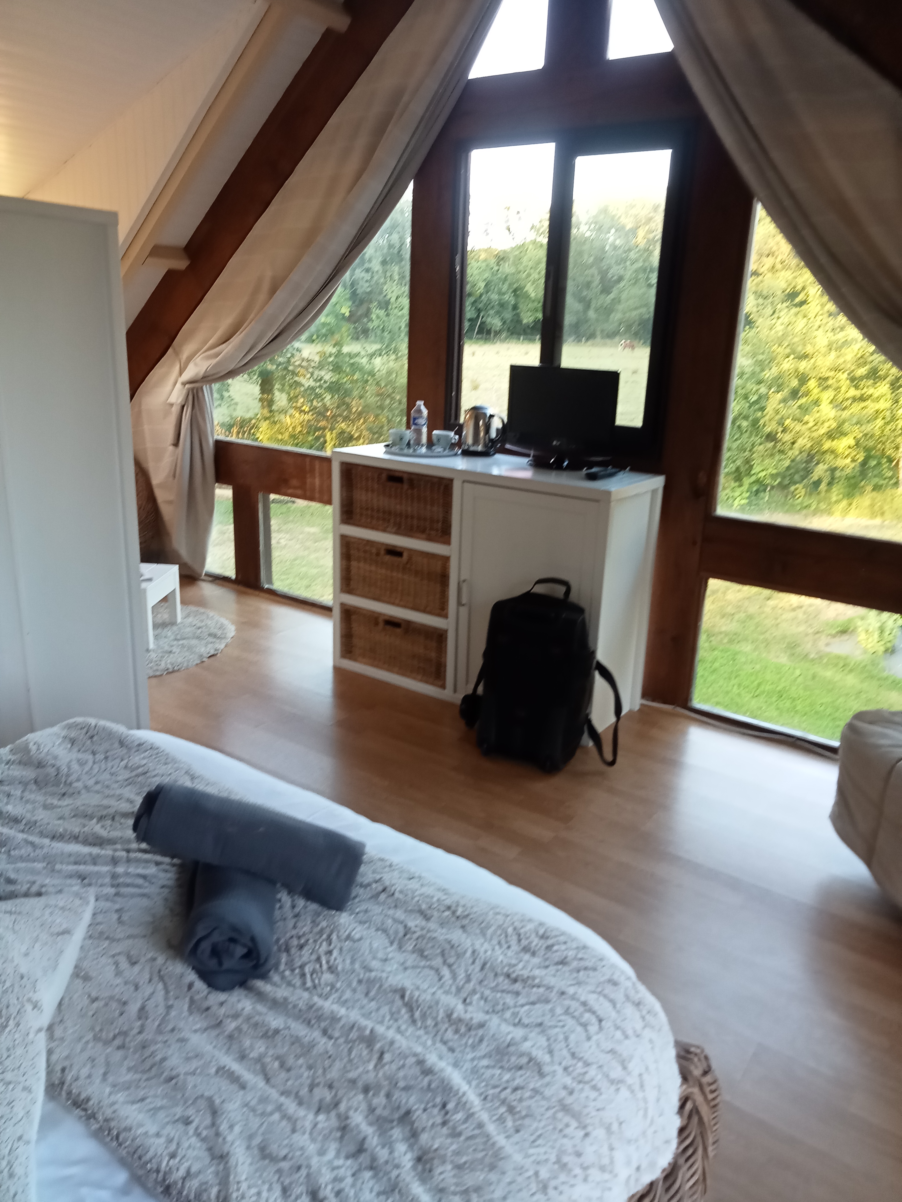 Quel joyau absolu ! J'ai réservé la cabane dans les arbres, mais nous sommes arrivés au milieu d'une vague de chaleur et ils ont eu la gentillesse de nous laisser passer d'une cabane dans les arbres à une chambre standard avec climatisation. L'ensemble de la région est magnifique au-delà de toute comparaison, les chambres sont propres et modernes (je n'ai pas essayé un cottage cependant) et le restaurant sert des plats à base de produits locaux/régionaux. Si vous êtes venu pour la campagne française, vous ne serez pas déçu.