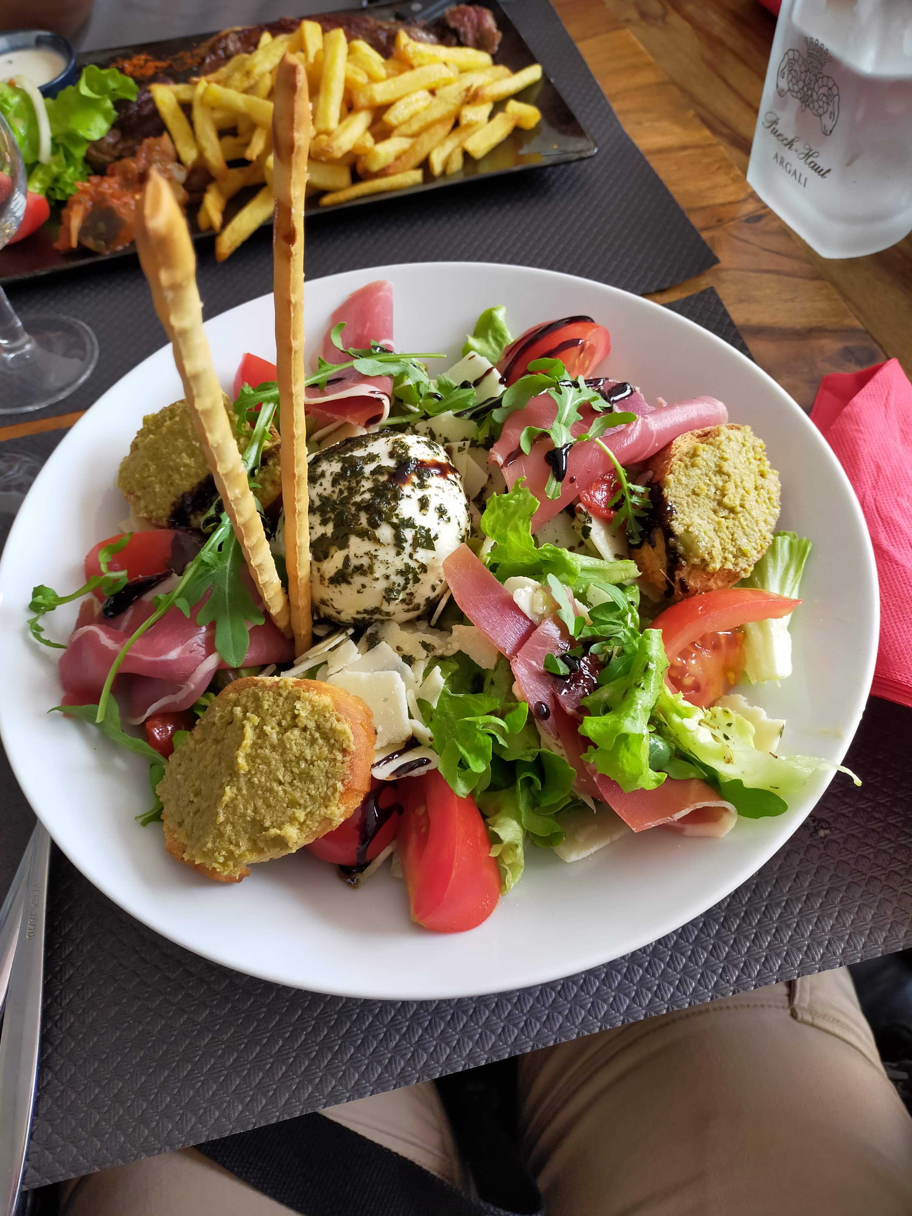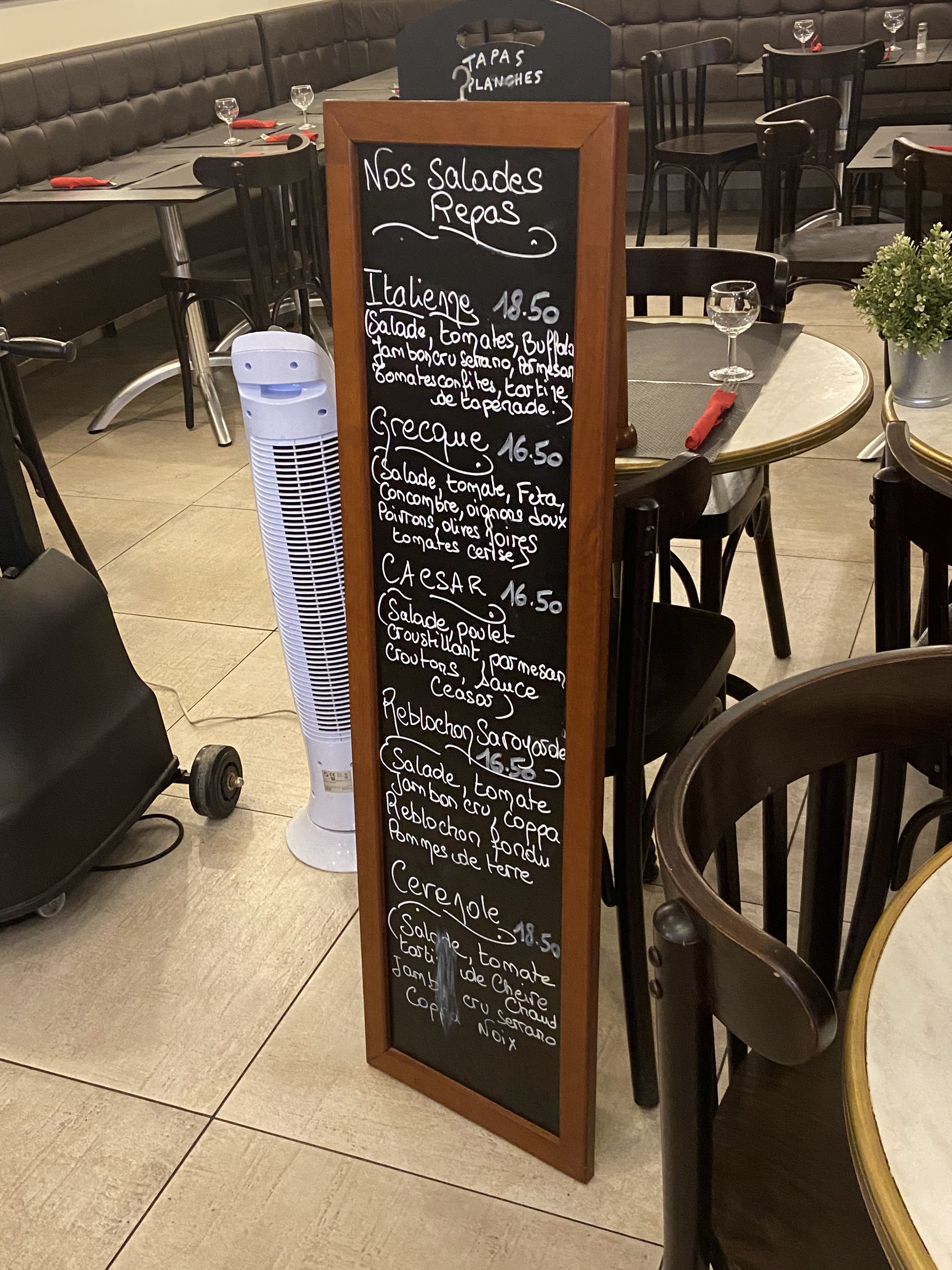 Accueil au top.Enfin d’un restaurant heureux de voir des clients , ça fait très plaisir Salade César et salade Italienne au top tant en présentation qu’en goût Au final plus de 15 euros pour une salade repas c’est quand même pas donné Mais bon on voulait se faire plaisir après le Covid … et c’est réussi . Accueil franchement au top par ce jeune homme qui est débordant de bonne humeur d’attention, Félicitations jeune homme !!!