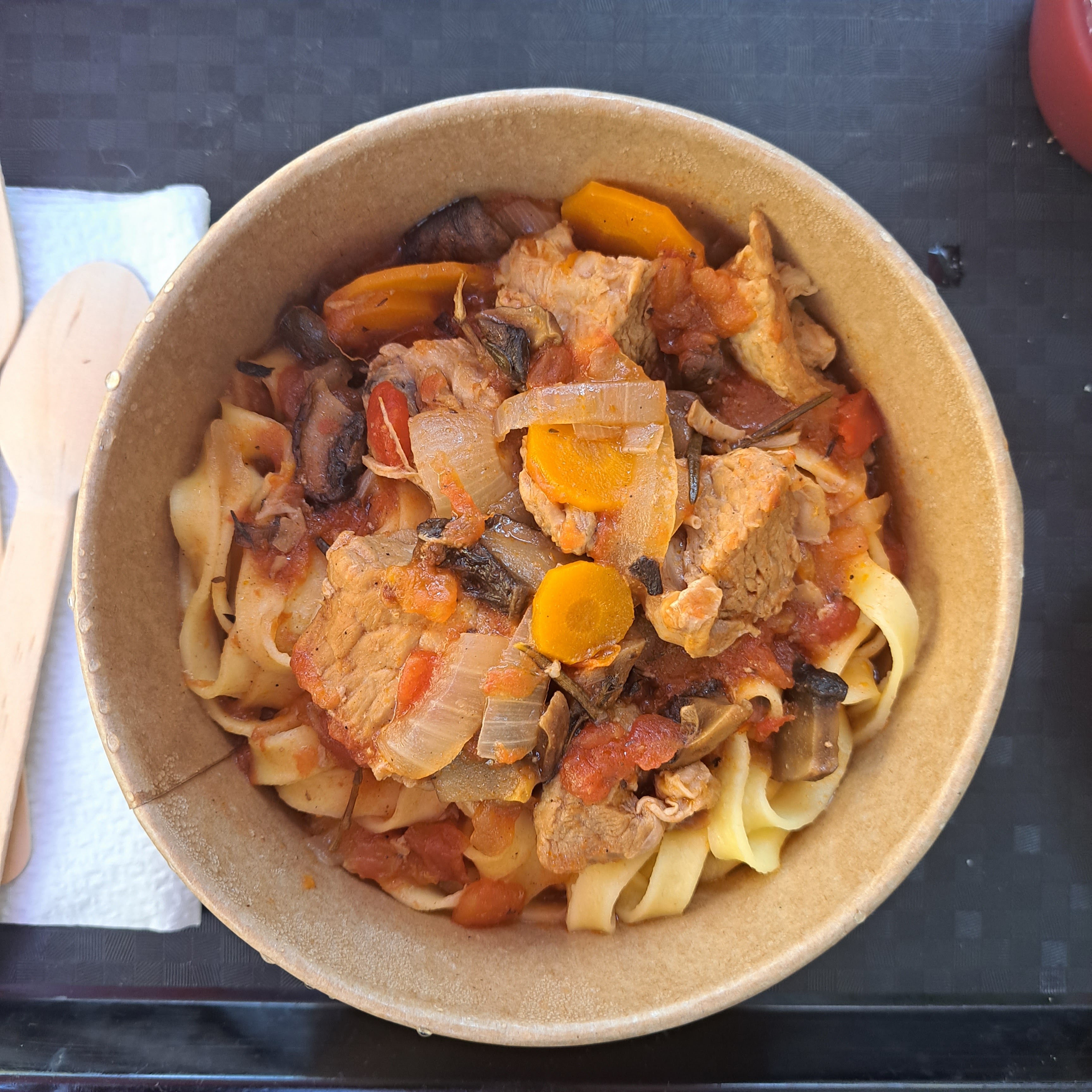 Très bon déjeuner, nous sommes arrivés vers 14h il restait deux plats du jour. On sent que c est de la cuisine maison faite le matin. Les produits et le plat ont bcp de goût et saveur. Bonne quantité, simple améliorant un peu plus de protéines (de poulet) Je reviendrais tester d autres plat du jour avec plaisir :) Bon service