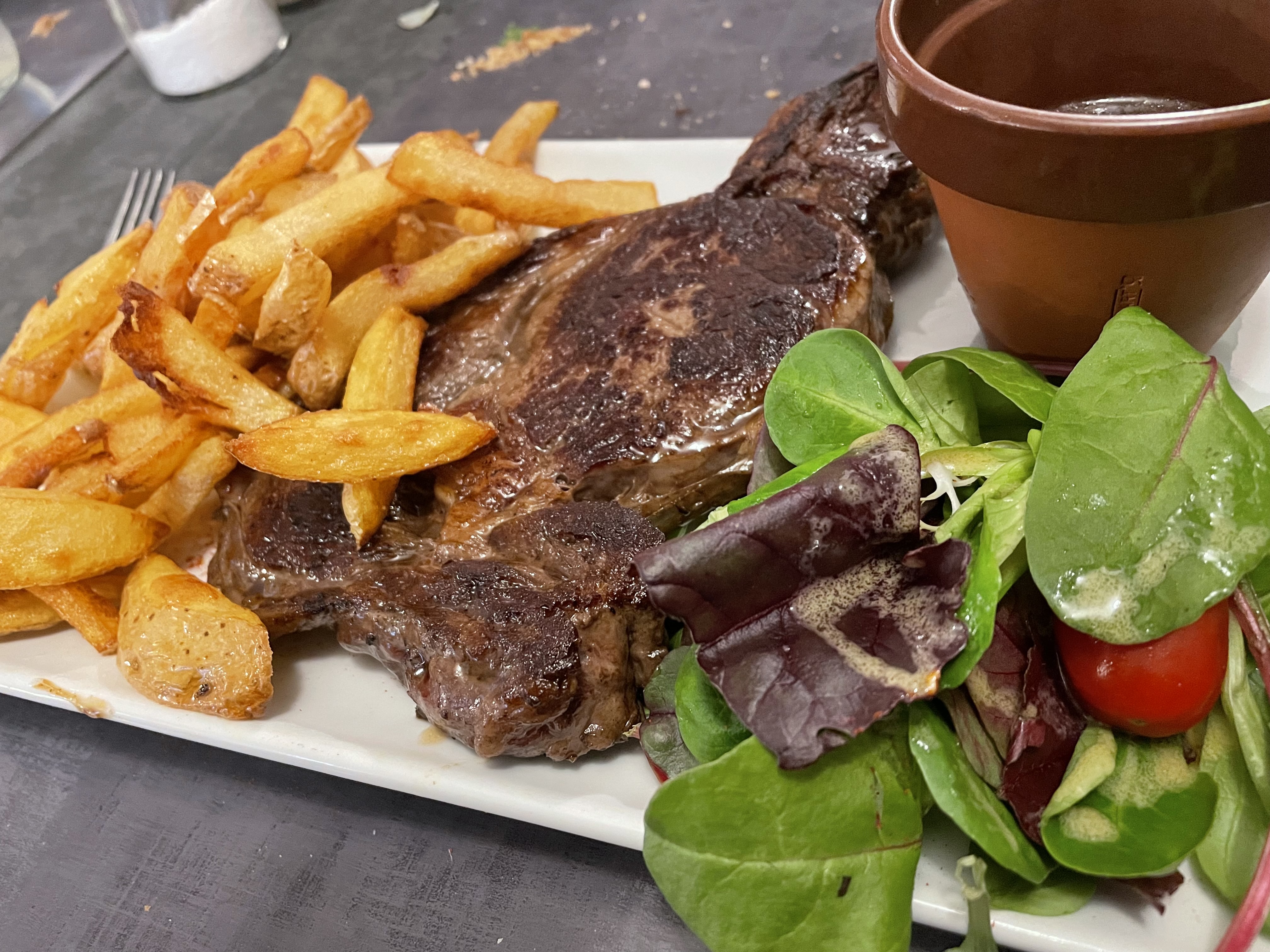 Agréablement surpris cote de boeuf cuite et savoureuse a souhait on a passé un très agréable moment.