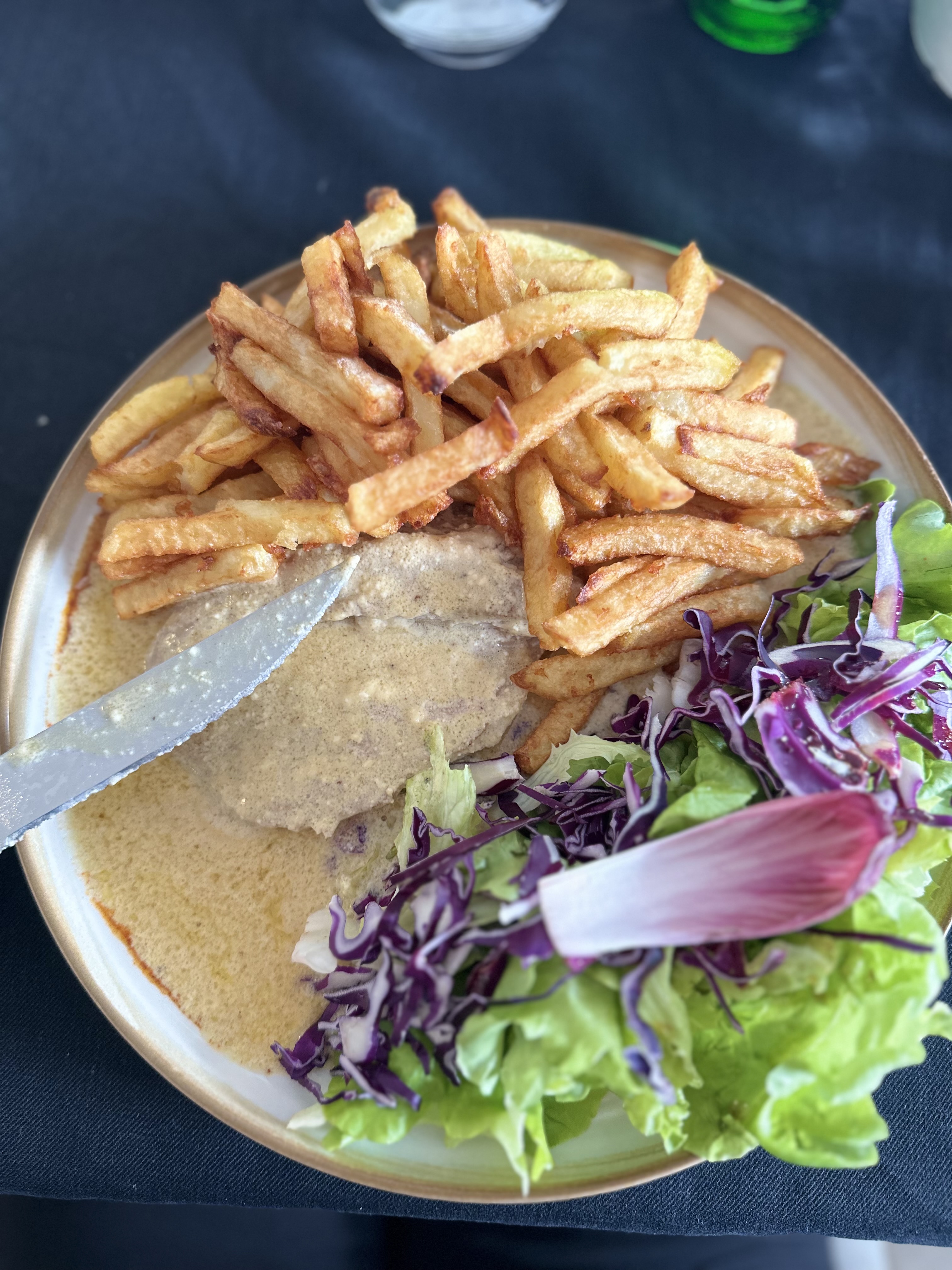 Déjeuner un dimanche midi, déçu par rapport aux commentaires, 40 min d’attente pour un plat, escalope de veau à la normande (crème,champignon) crème trop liquide à la limite de l’eau et trop peu de champignon, les frites ne croustiller pas mais l’escalope était correct. Déçu au vue du prix je m’attendais à mieux.