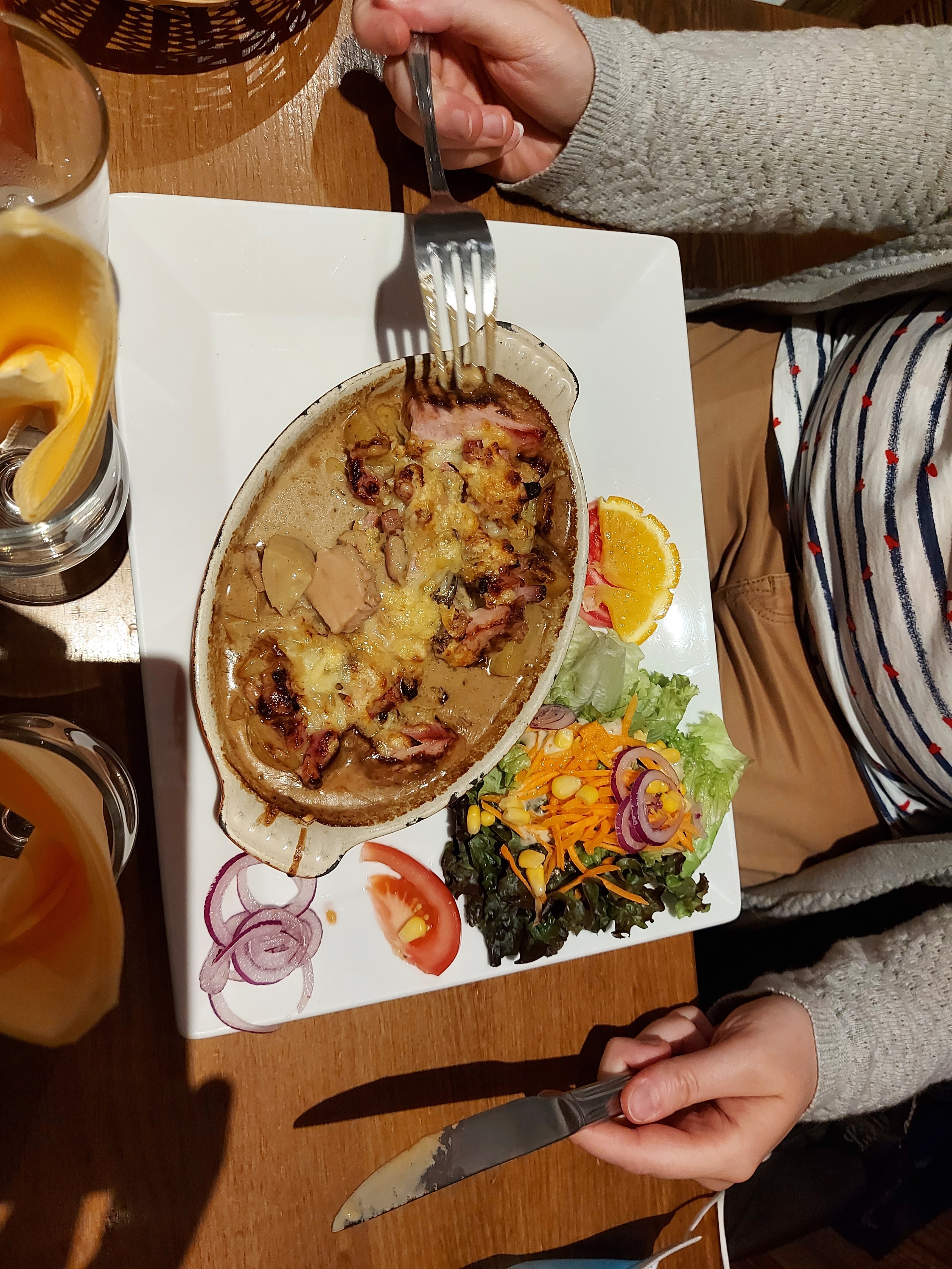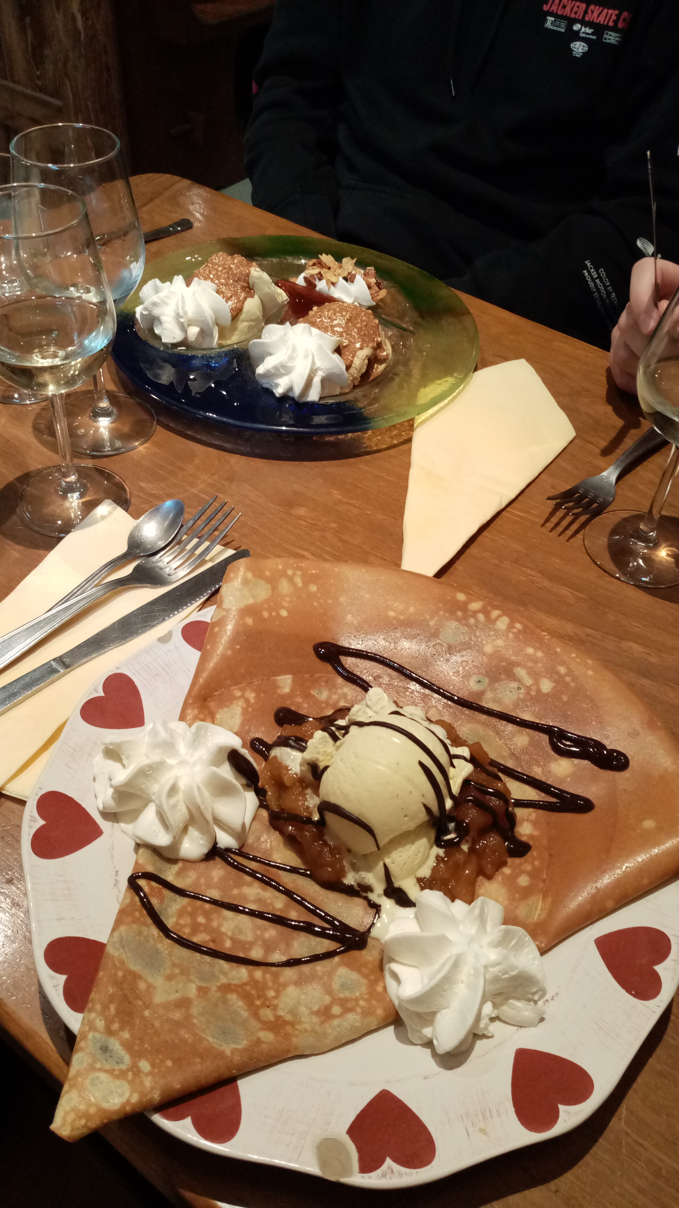 La tartiflette était excellente, la crêpe à la crème de marron aussi. Serveurs peu souriants.. limite aimable par moment. Dommage