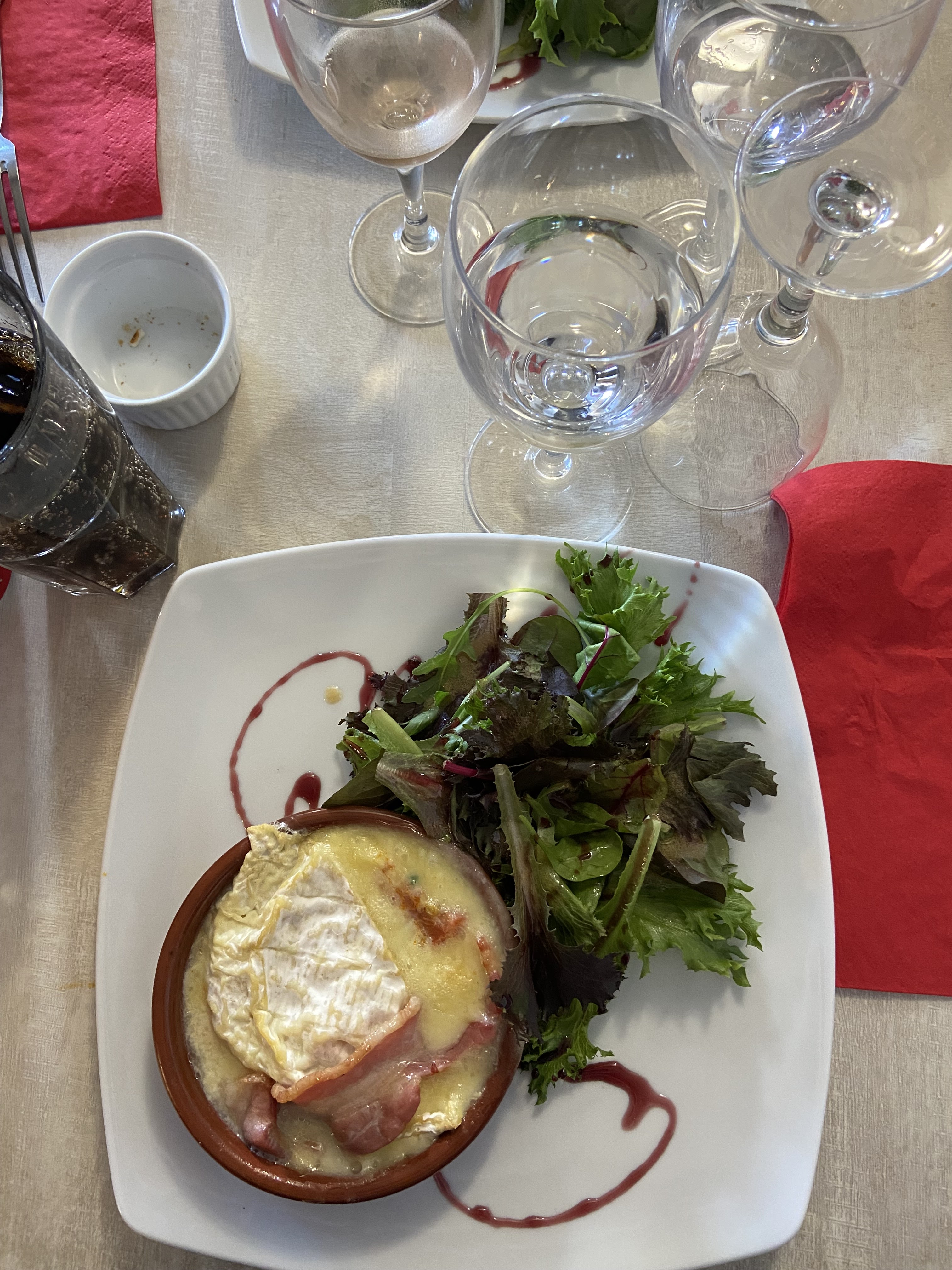 Cuisine maison copieuse et bonne, grande salle intérieure et terrasse dans petite cour intérieure. Au sein du village. Parking gratuit à proximité. Peu de monde ce vendredi midi du WE Ascension (tout le monde est au bord de la mer ou déjeune à Pézenas) mais déjà été une fois et c'était complet. Menu à 28€ avec 3 plats (tatin pomme foie gras poêlé, ris d'agneau purée maison et petits légumes, coupe de fraise) avec fromage (toast de chèvre frais) chose rare et appréciable. Existe un menu à prix inférieur 3 plats aussi. Boissons à prix très corrects.
