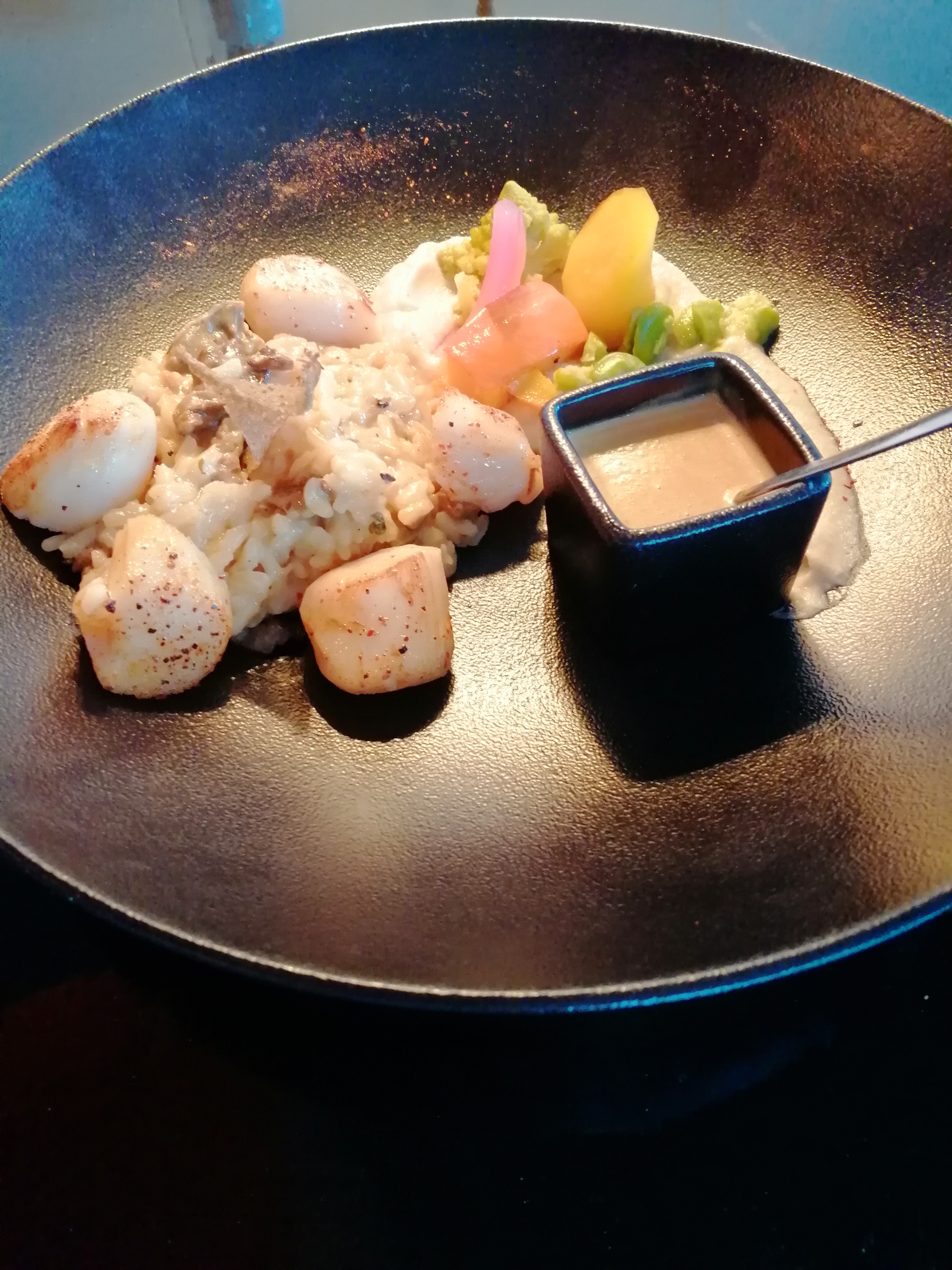 Chouette ambiance, belles assiettes, mélange de saveurs délicieuses, à recommander totalement.