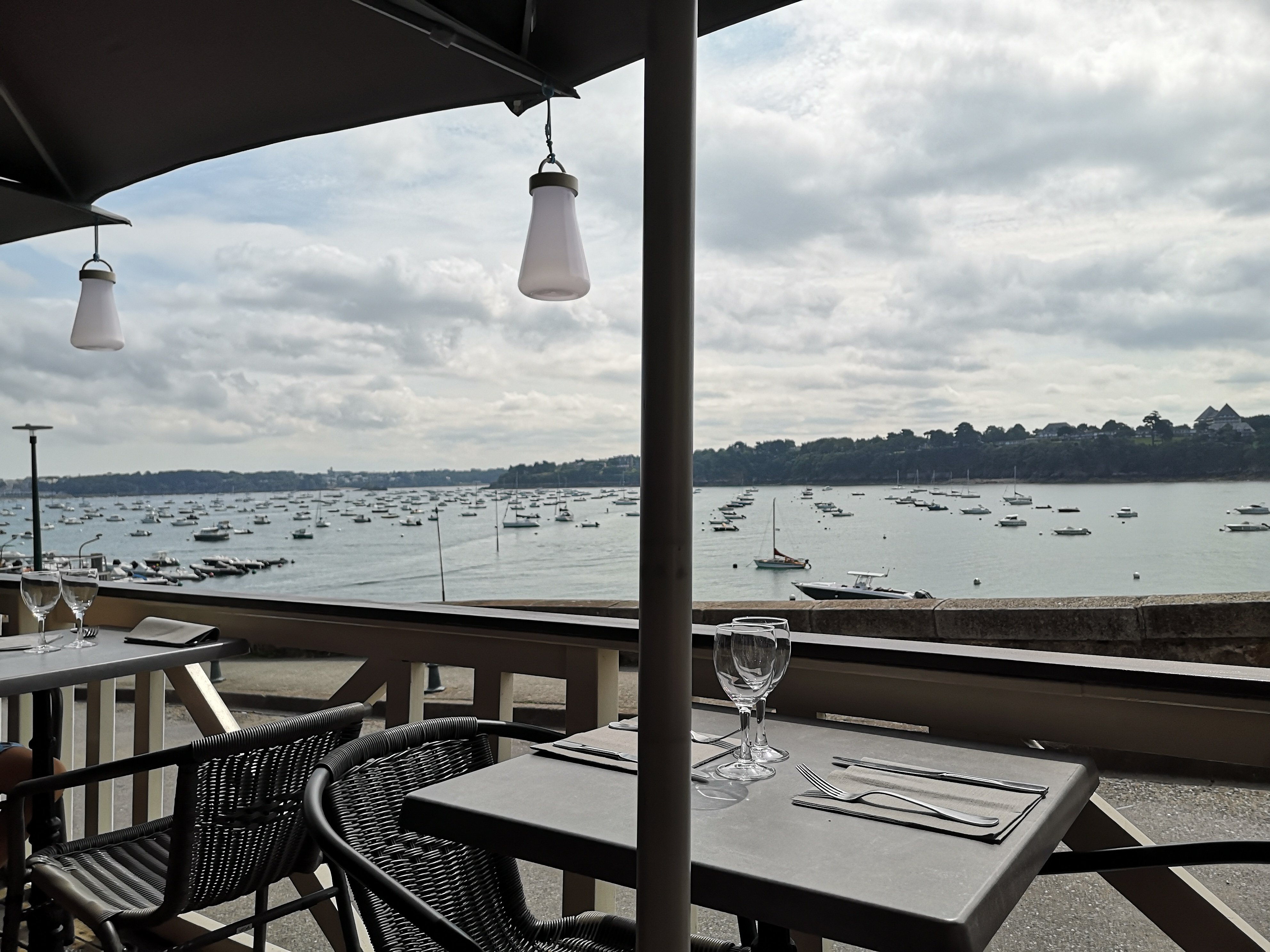 Terrasse avec vue imprenable sur le port de Dinard on y mange très bien et on y est très très bien accueilli merci beaucoup pour ce moment agréable et délicieux