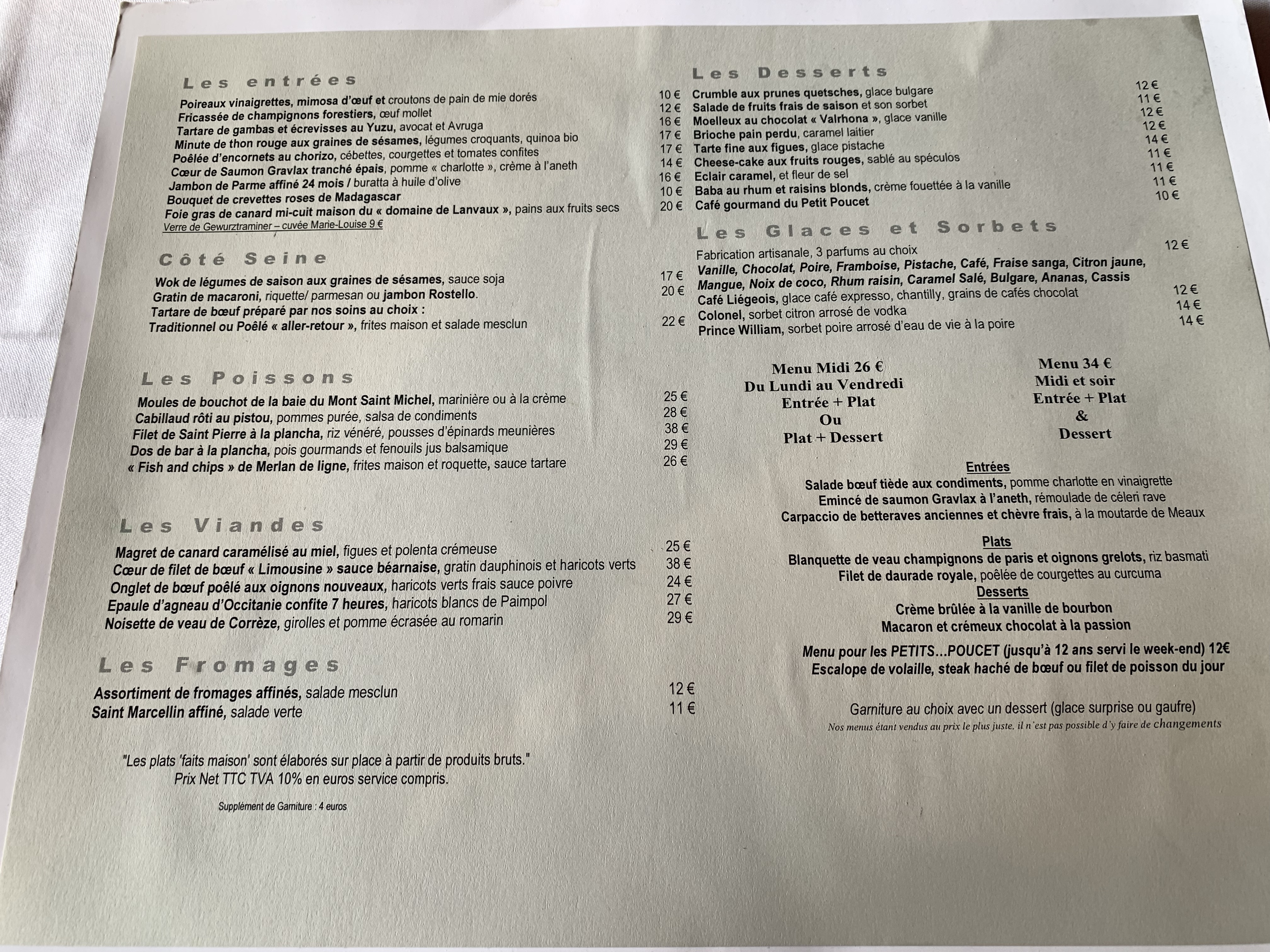 Pas beaucoup de choix dans le menu seulement 2 choix pour commencer et également pour le plat.