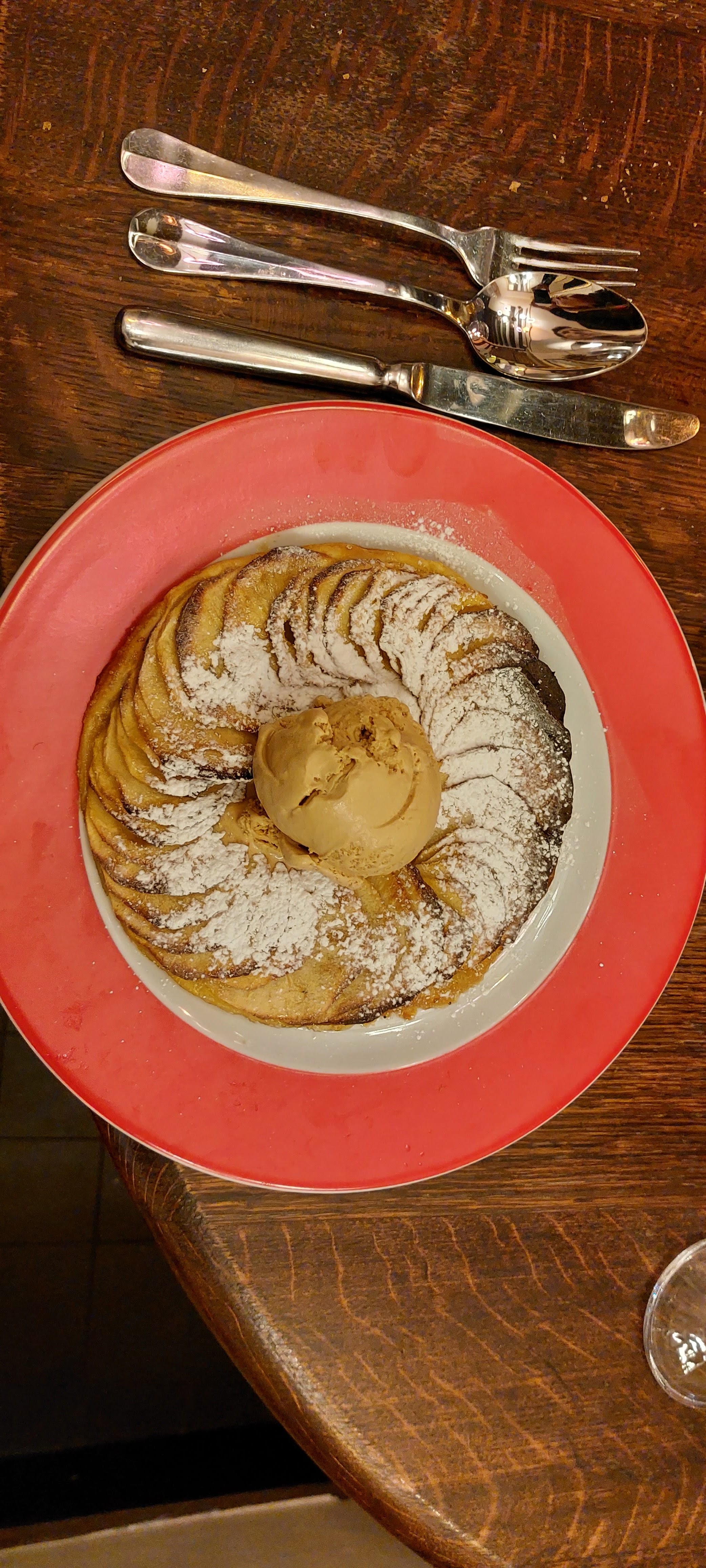 Juste excellent, de l'entrée au dessert ! La dinde farcies aux tomates avec son gratin dauphinois un pur délice, le carré d'agneau est bien parfumé, l'assiette coing coing (oui oui who knows knows) si on veut se gâter ! Mais le coup de cœur de la soirée pour moi fut la tarte aux pommes avec sa boule de glace vanille ( entièrement fait maison), la tarte était bonne mais la glace absolument délicieuse !! À tester absolument!