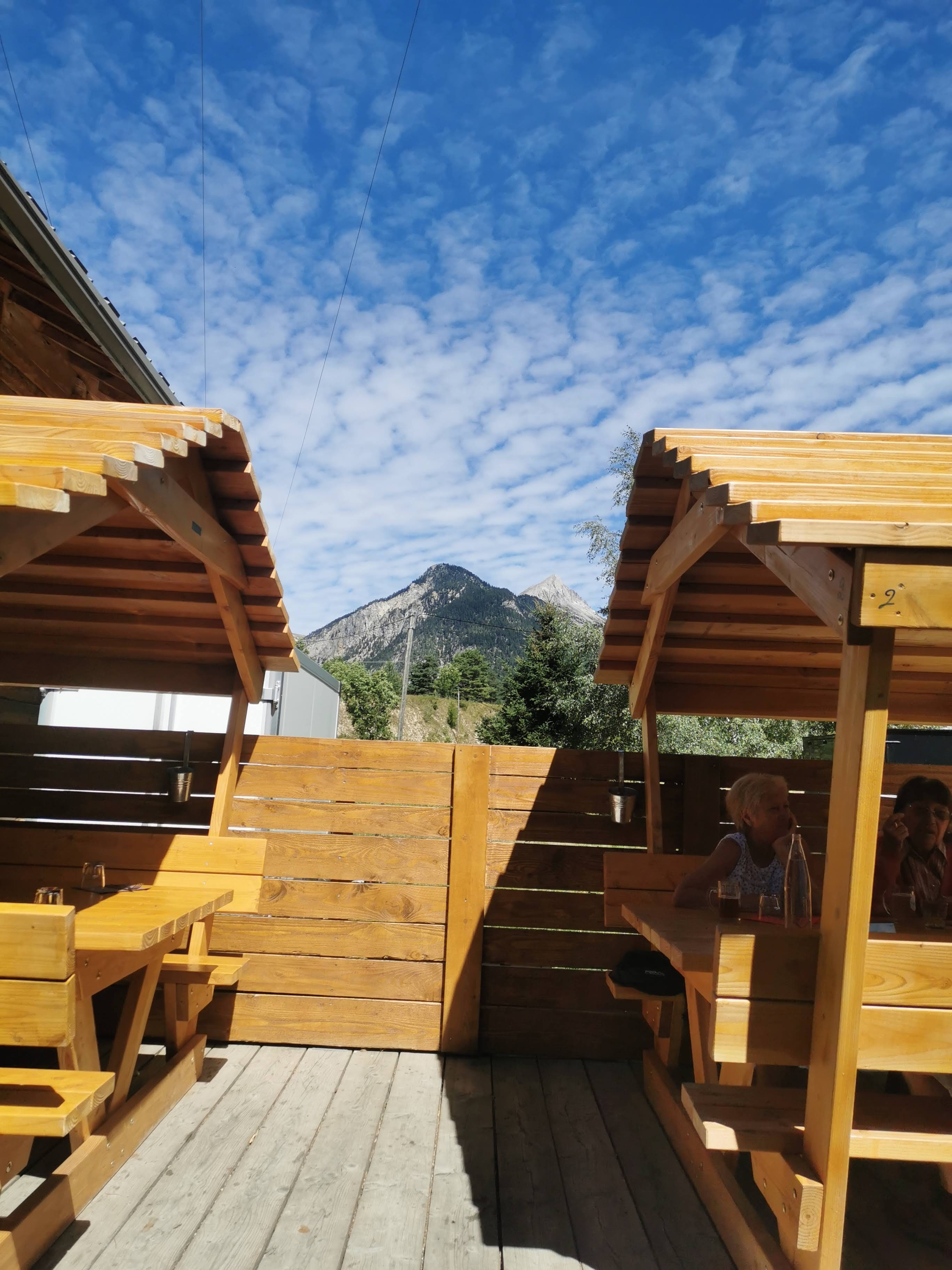 On mange sur la terrasse, au soleil, avec une vue imprenable sur les montagnes (Pointe Pécé, notamment). Tout est fait maison même le pain. La charcuterie de Dédé, le patron-traiteur est excellente. Le fromage à raclette chauffe devant vous sur un immense brasero. Une raclette au feu de bois,(à volonté), c'est vraiment délicieux. L'ambiance est familiale. Les patrons et leur fille sont très sympathiques. Une adresse à recommander dans la vallée de la Clarée. Un incontournable. A bientôt. Sylvie