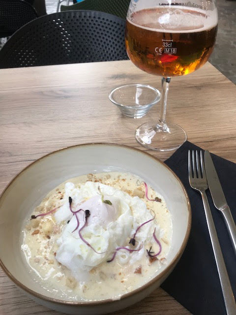 Cela semble très populaire auprès des locaux et je comprends très bien pourquoi. J'ai beaucoup apprécié l'œuf poché au Maroilles et on m'a servi une excellente bière locale. Le service était poli et sympathique et j'ai apprécié manger sur leur terrasse protégée par une arcade. Bel endroit.