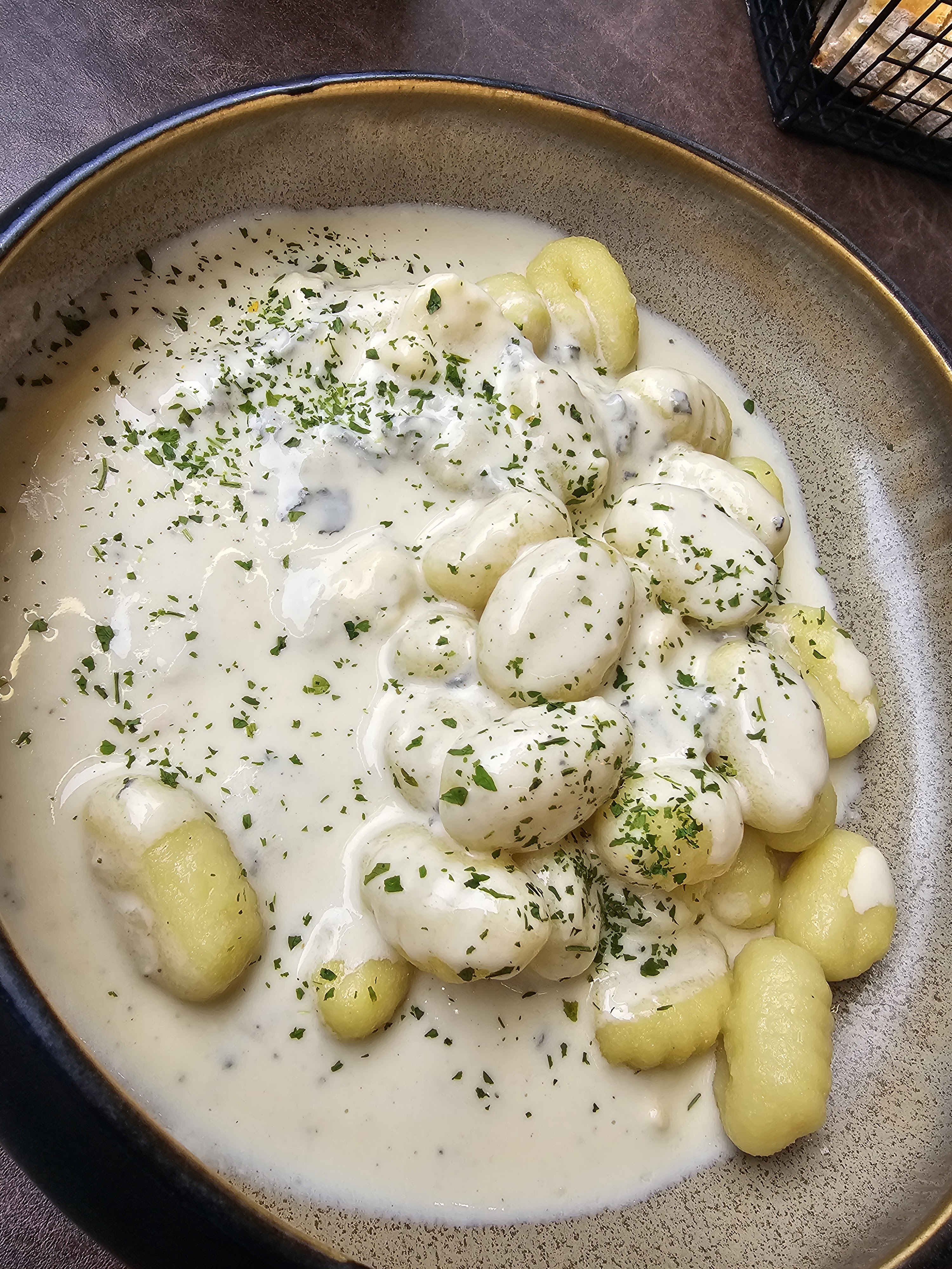 J'ai reçu un très bon accueil de la part de la serveuse avec un très joli sourire. La prise de commande est effectuée par son collègue, qui est également très sympa. Je commande un coca et suis surpris de le recevoir dans un verre, probablement versé à la bouteille. Je suis aussi étonné de recevoir mes gnocchis au bleu seulement 3 minutes après, quelle rapidité ! La sauce au bleu est super bonne, cependant, j'aurais apprécié que mes gnocchis soient revenus dans une poêle avec un peu de beurre pour les faire légèrement grillés. Là, j'avais dans la bouche une sorte de pâte sans consistance ni goût. Bref, je commande un café gourmand qui est sans plus, et la petite tarte au citron est beaucoup trop acide. Je n'arrive pas à la finir. Voilà, un petit restaurant familial, mais des choses à améliorer.