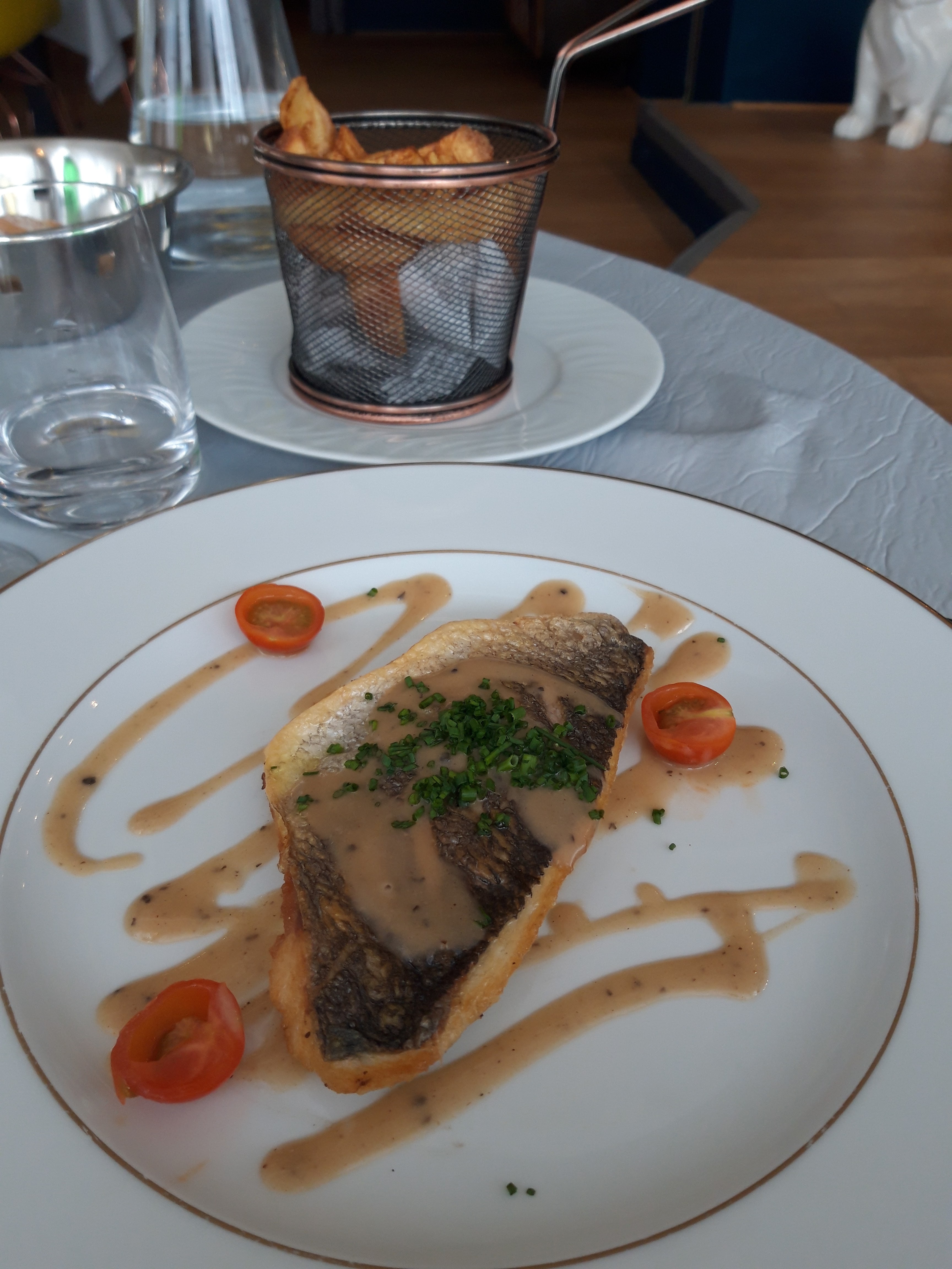 Très belle découverte avec nos amis, Accueil très sympa, Très belle carte de vin mais nous avons choisis 4 verres différents. Entrée Topissime, Enfin un bon Risotto, la suite, des st Jacques et le désert une tuerie. Je recommande cet établissement, surtout que nous avons partagé ce dîner avec des amis professionnels dans les sorbets. Encore un grand merci au tablier noir qui nous a recommandé ce restaurant