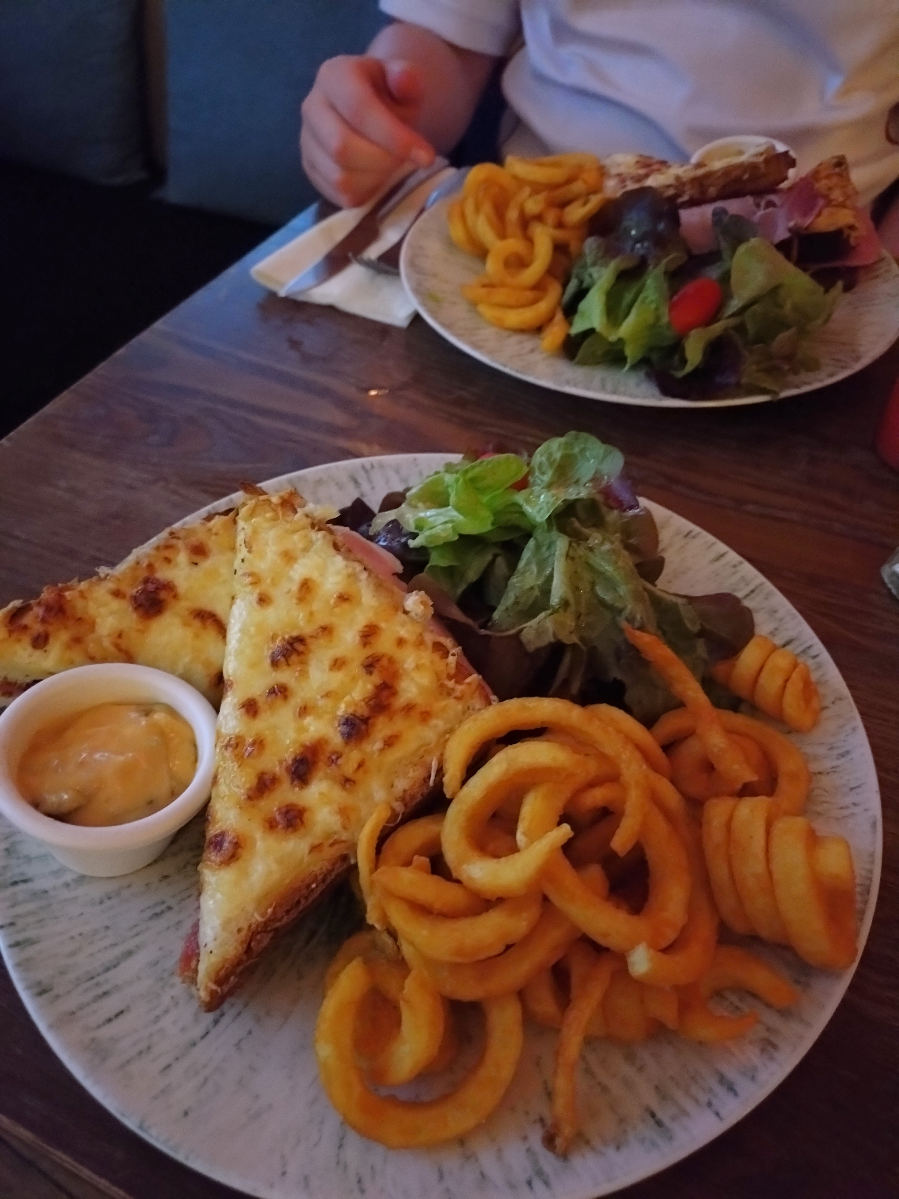 La salade de saumon est très bonne. Hamburgers et croque madame aussi. Un endroit confortable. Les clients réguliers aident le serveur à servir ou à traduire. Bon!