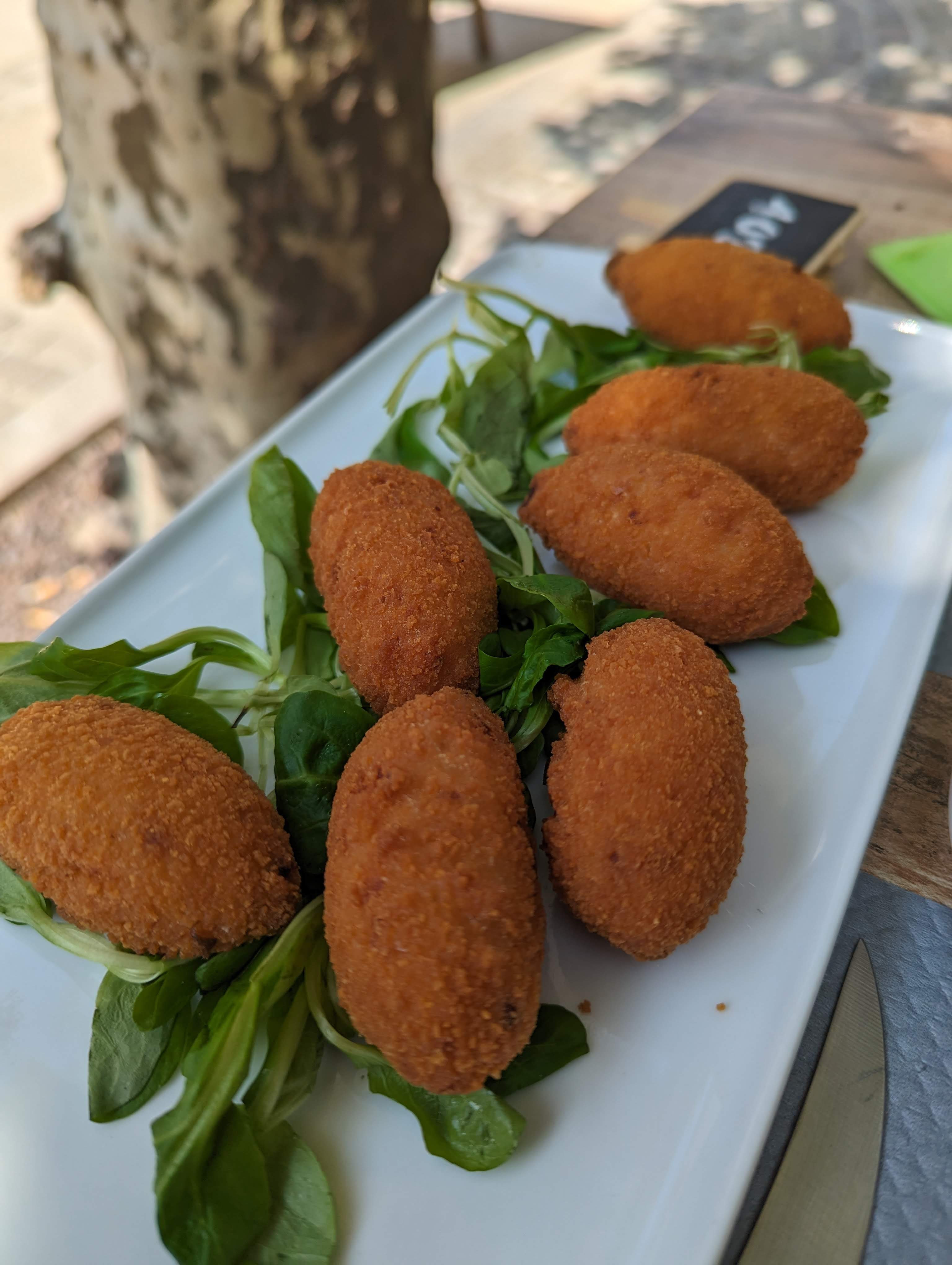Jolie petit restaurant avec de bons produits. Service sous les arbres de la place les jours de marché pensez à réserver. Très bonnes tapas.