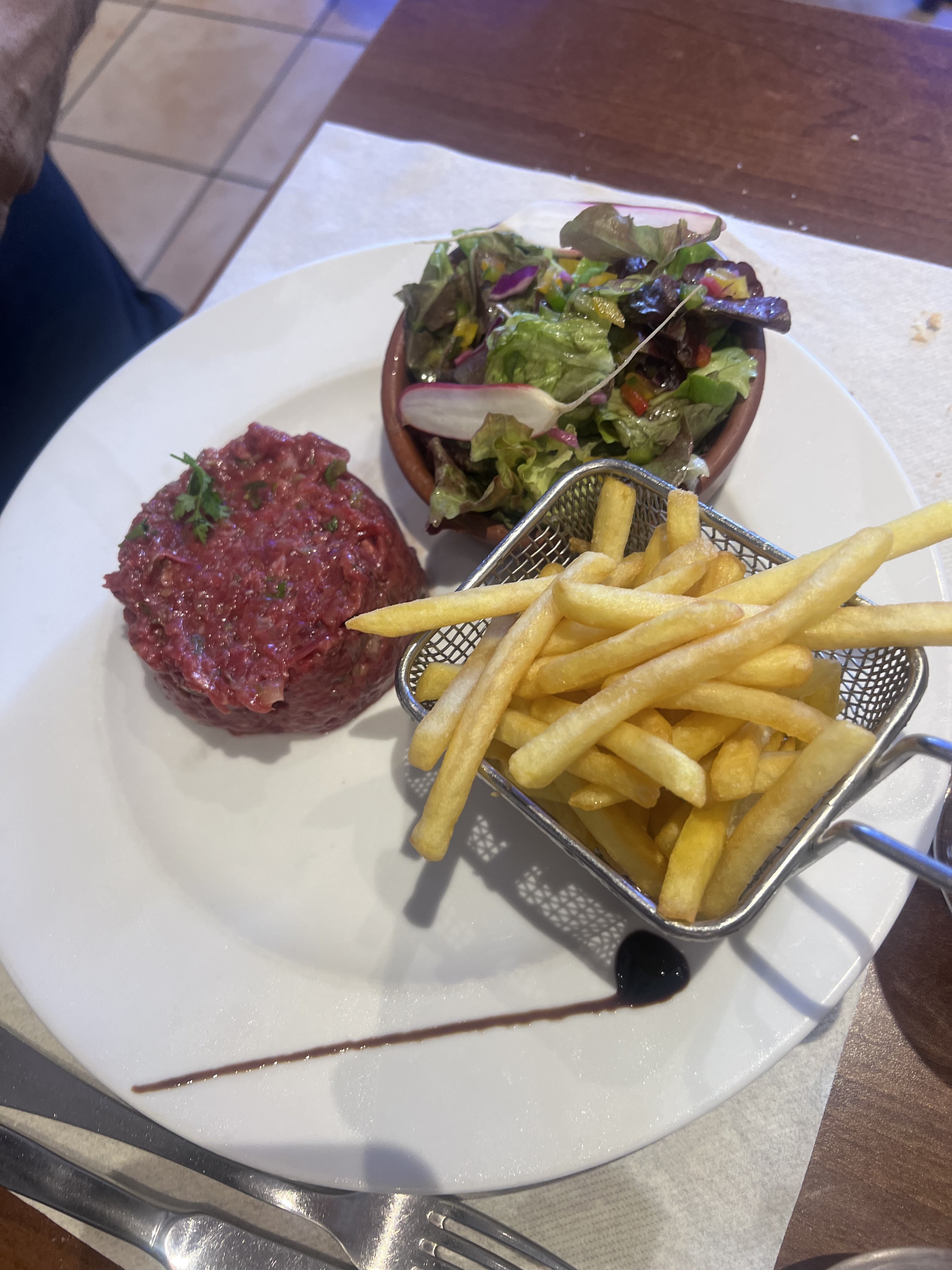 Très bon rapport qualité prix, une cuisson de viande respectee suivant commande. Un service de qualité avec une serveuse souriante contrairement à la patronne rabat joie ou il fallait porter le masque alors qu'on mangeait sur la terrasse.