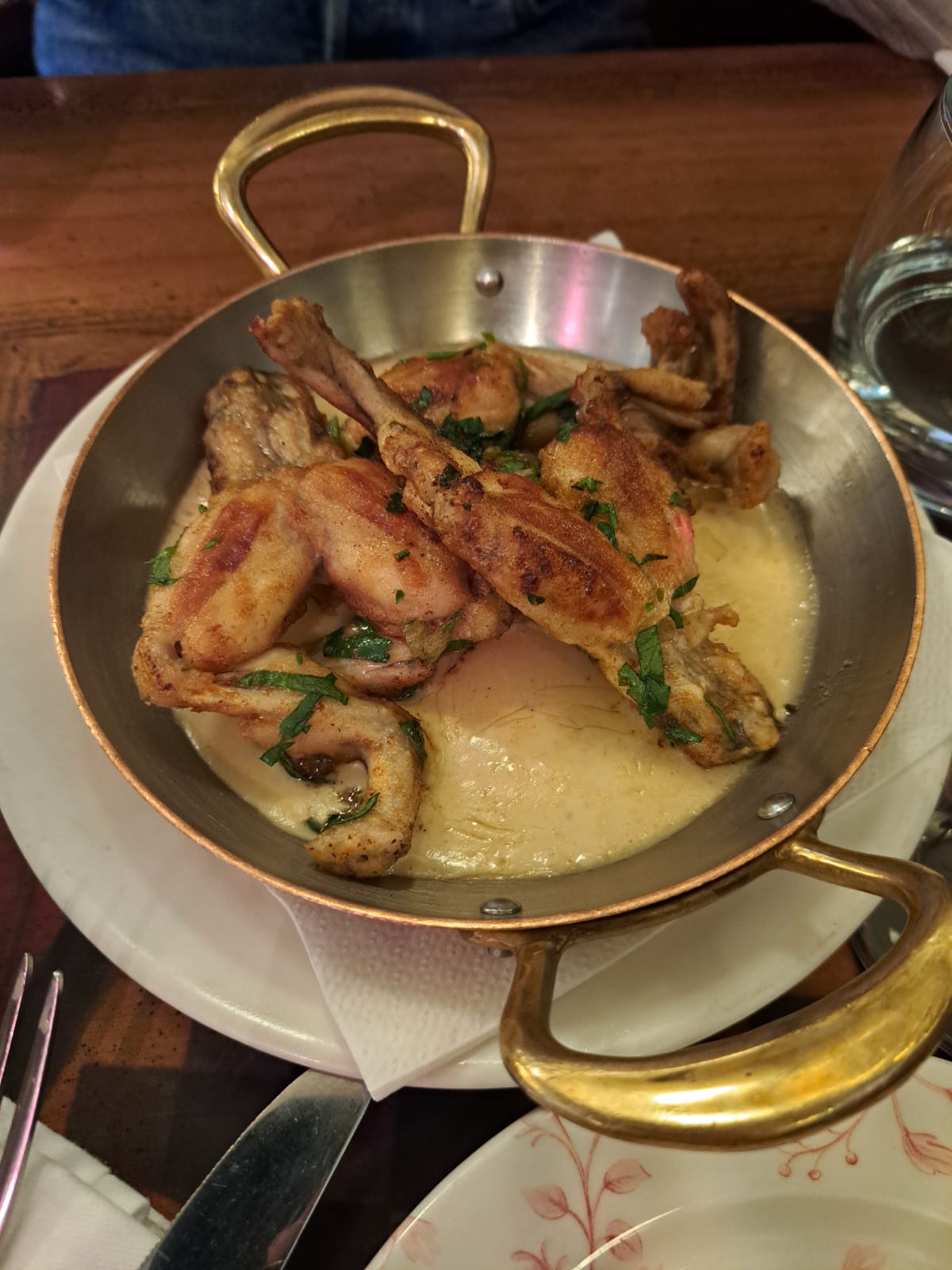 Piège à touristes.très cher pour le rapport qualité. Les bons vins sont inabordables. Nous avons commandé fricassée de cuisses de grenouilles crème d ail et nous avons eu une sauce crème échalote citron ce qui n est pas du tout pareil! La cote de bœuf était très moyenne cuite sans aucun goût et les frites fraîches bien réchauffées. Vaut un détour pour ne pas entrer .très très décevant .😡