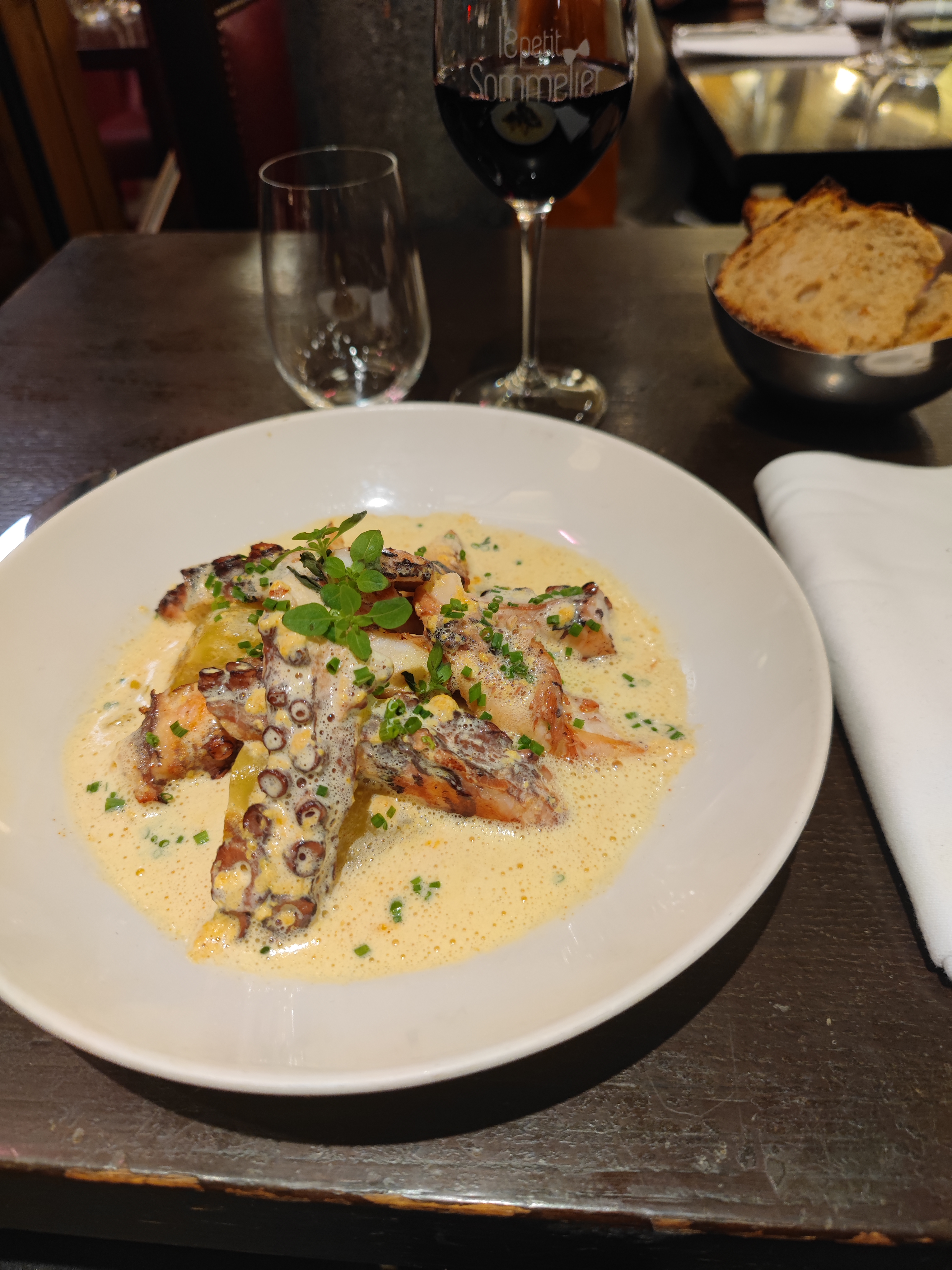 Un restaurant tenu par un Sommelier passionné : Pierre. Du coup, belle carte de vins , des trouvailles, à des prix raisonnables. Mais aussi de grands crus.. une carte peu étendue: gage de fraîcheur et de qualité. Un régal. Mais ne le répétez pas.. c'est mon adresse préférée à ce niveau de prix..