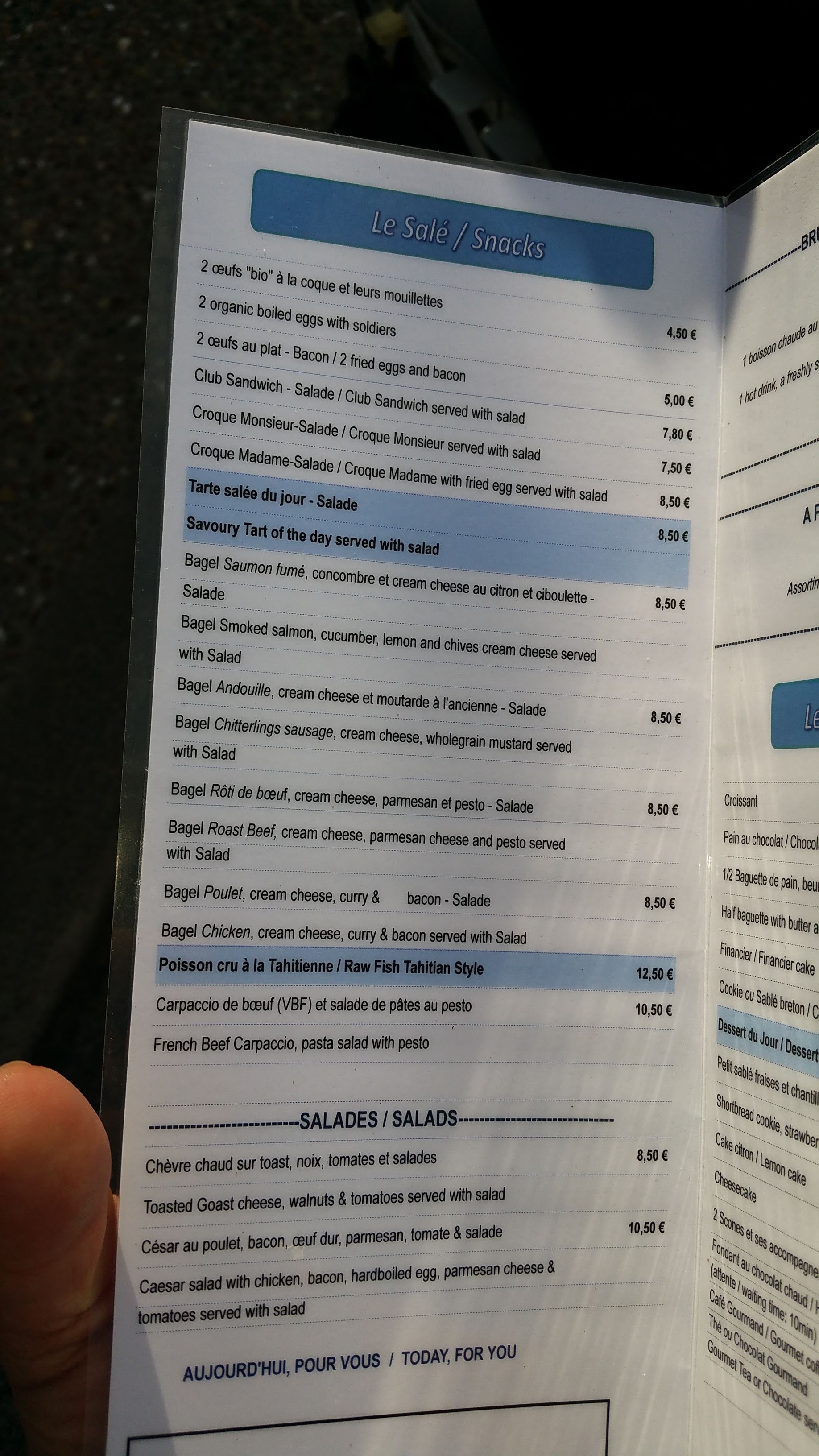 Pâtisseries bonnes mais attention ! En fonction de la tête du client, le prix varie. 2€ ou 2€50 le cookie, pareil pour le jus à 6 ou 6€50. Demandez la carte pour ne pas vous faire arnaquer.