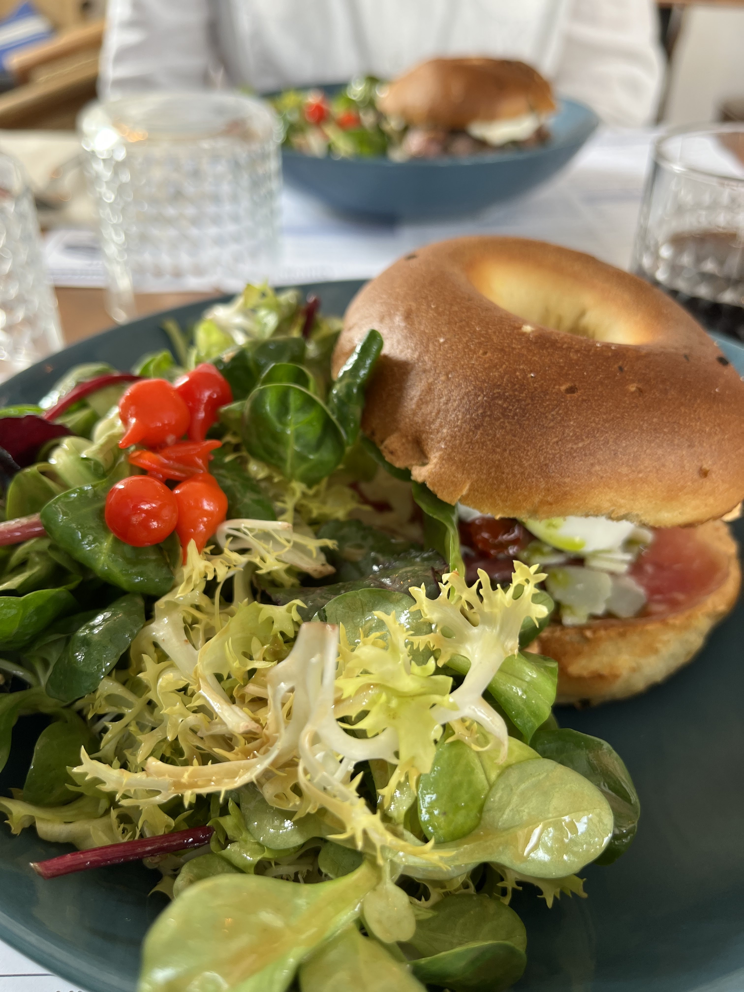 Bon rapport qualité prix. Bonnes salades et bons bagels. Les desserts sont maison. Service efficace. Parfait pour manger en famille et pas loin de la plage.