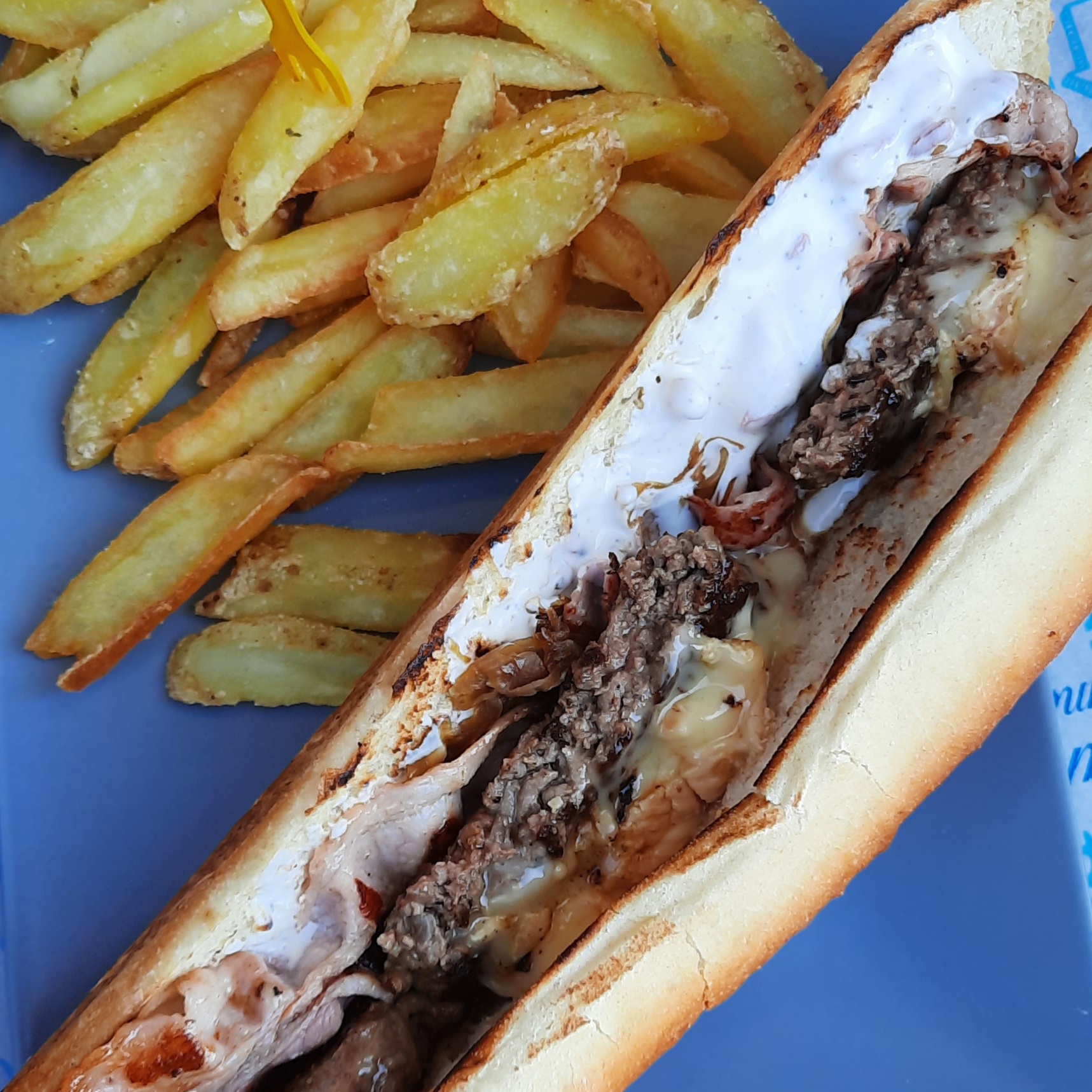 Ça fait plusieurs fois que je passe devant et cette fois ci je me suis dis pourquoi pas en voyant l'ardoise attrayante ! J'ai vraiment aimé l'endroit très propre et l'accueil au top. La commande a été servie rapidement. Le burger vraiment bon avec des aliments de qualité et une viande goûteuse. Bref vous avez un nouveau client je pense revenir pour goûter toute la carte 😂. Le tarif est attractif au vu de la qualité de la nourriture servie. Le blanc de boeuf avec les frites c'est la base ! C'est un sans faute ... Si je devais prononcer une suggestion je dirais des frites fraîches pour parfaire le menu ... Et là on se met bien 👍