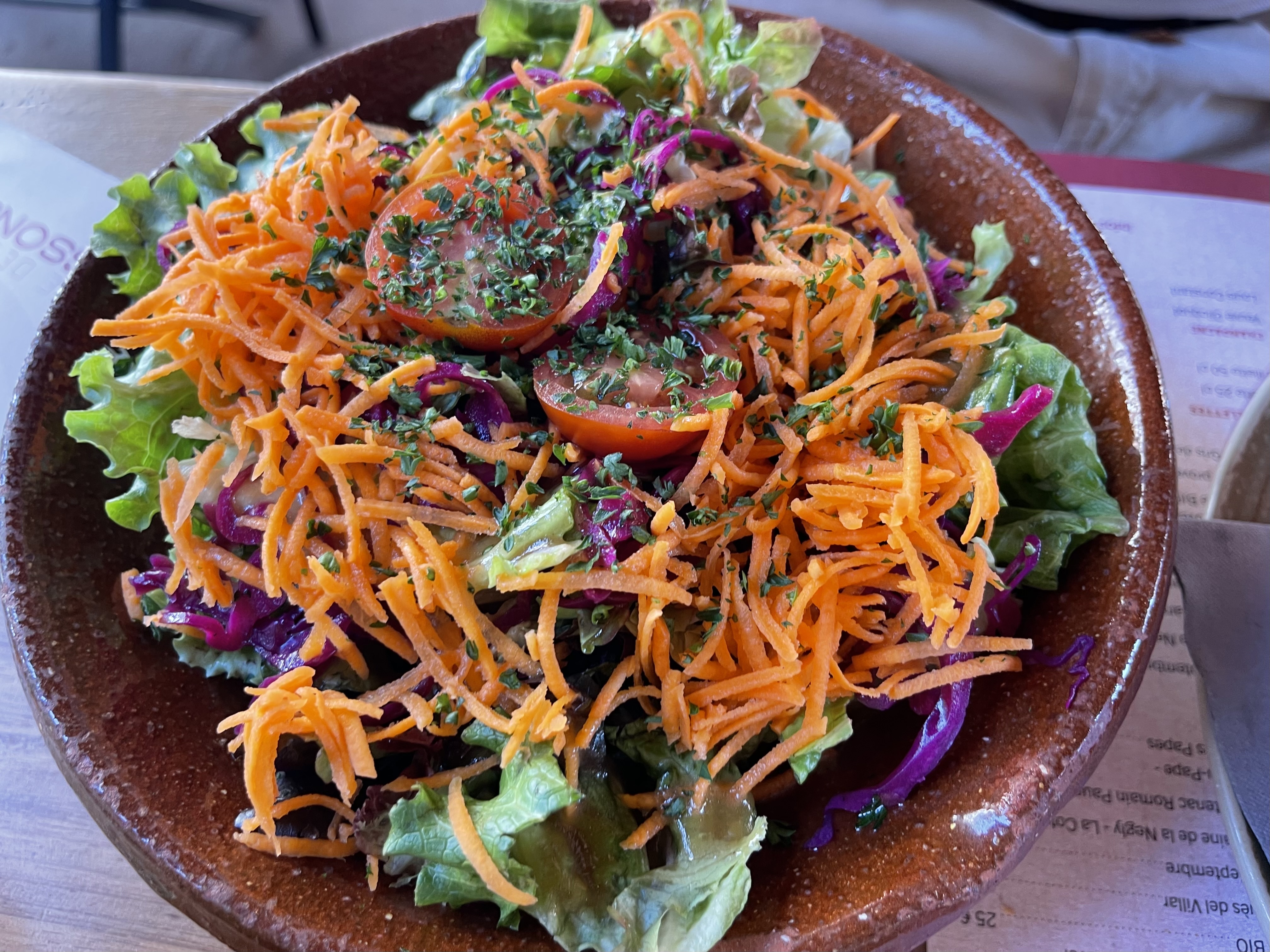 Bof...serveur très speed,pressé de finir son service, le contenu de l assiette laisse à désirer servi avec une salade pausé à l arrache dans l assiette, avec 5 carottes râpées pauser dessus on se demande si c était voulu où si elles sont tombées dans l assiette ,frites cramés viandes froides pas terrible